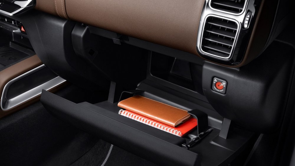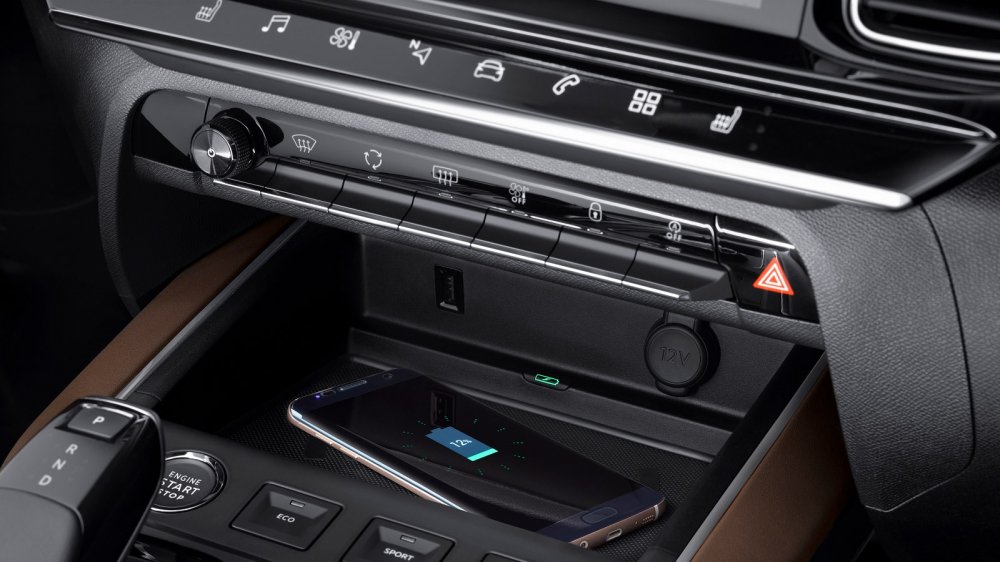 Тему Поднебесной я завёл не случайно: я искренне надеюсь, что некоторые эргономические особенности, которых не лишён C5 Aircross, будущий покупатель кроссовера всё же воспримет как «французский шарм», а не как «китайский пофигизм». Ну вот, к примеру: для выбора режимов работы силового агрегата имеются две кнопки, расположенные рядом с кнопкой запуска двигателя. Посмотрим, как эффектно и гармонично эта панель выглядит сверху.