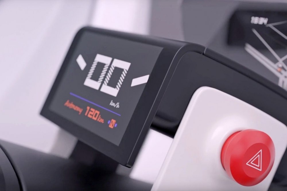 Ввиду узости машинки центральной консоли внутри нет вообще, а располагающиеся обычно на ней кнопки сконцентрированы на многофункциональном цилиндре справа от руля: он отвечает за пуск двигателя и режимы движения, и в него же встроен динамик аудиосистемы с регулятором громкости, а в качестве источника сигнала используется всё тот же смартфон, который коммуницирует с цилиндром через Bluetooth.