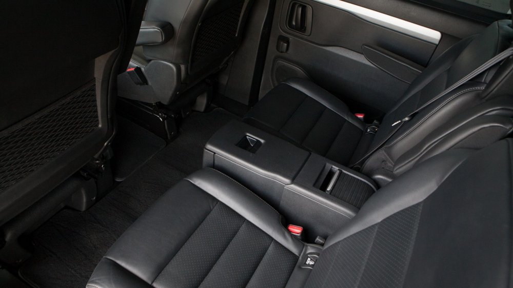 Ну а теперь перейдем в пассажирскую зону. Можно, конечно, протиснуться в проход между передними сиденьями, но мы этого делать не будем: воспользуемся боковыми сдвижными дверями. И сразу плюс «французу»: его двери снабжены сервоприводами, и их можно открыть или закрыть аж пятью различными способами: кнопкой на брелоке, кнопкой на центральной консоли, кнопкой у двери на стойке. Кроме того, открыть дверь можно снаружи, потянув за ручку, а можно просто махнуть ногой под углом бампера. Правда, полезность последнего способа вызывает сомнения. Он нужен в случае, если ты подходишь к машине с грузом в руках, и тут был бы полезней сервопривод, открывающий заднюю дверь, ведь дорожной поклаже место в багажнике, а не под ногами. Но электропривода нет, так что огромную как трюмный люк сухогруза дверь приходится поднимать и опускать вручную.