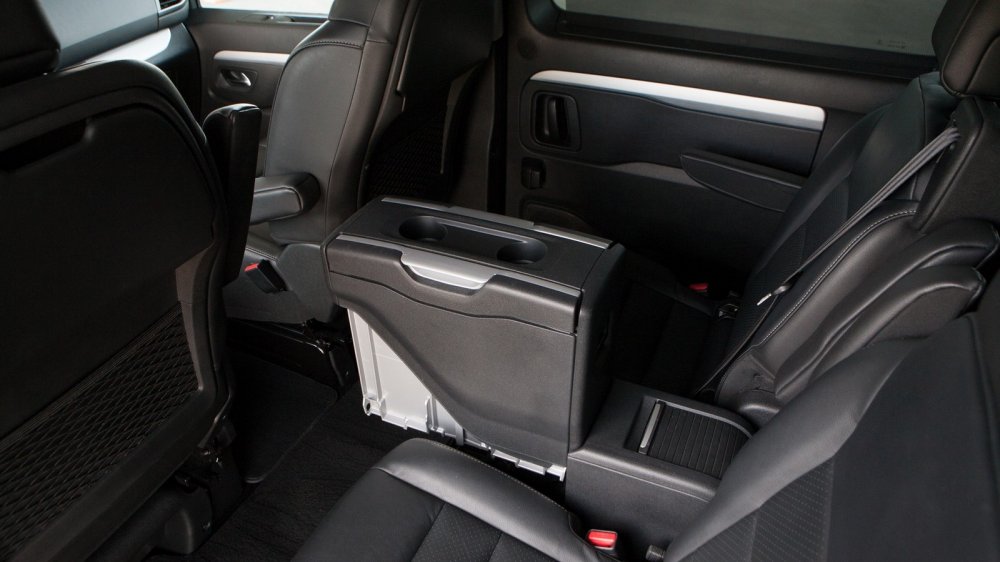 А как обстоят дела непосредственно с размещением пассажиров? В Hyundai H1 второй ряд представляет собой обычный диван, разделенный в отношении два к одному. Обе эти части можно перемещать в продольном направлении. Для прохода на третий ряд нужно откинуть вперед спинку и сдвинуть подушку вперед до упора. Сам третий ряд (там тоже могут разместиться три пассажира) жестко закреплен на полу. SpaceTourer – даром, что версия Business Lounge — может принять на борт на одного человека меньше: во втором ряду только два кресла. Зато это настоящие капитанские кресла с подлокотниками, между которыми разместилась тумбочка-трансформер. Эти кресла можно не только двигать вперед-назад, но и разворачивать на 180 градусов. Разворачиваем кресла, до упора сдвигаем их вперед, тумбочку трансформируем в столик, задний диван, в свою очередь, двигаем до упора назад (в отличие от корейского минивэна, здесь третий ряд кресел можно передвигать), и вуаля! Наш минивэн превращается в офис на колесах. Тут очень кстати окажется розетка на 220 вольт, притаившаяся под креслом переднего пассажира – а ну как понадобится включить ноутбук или принтер?