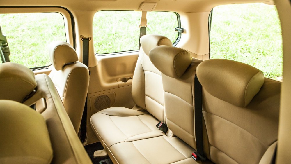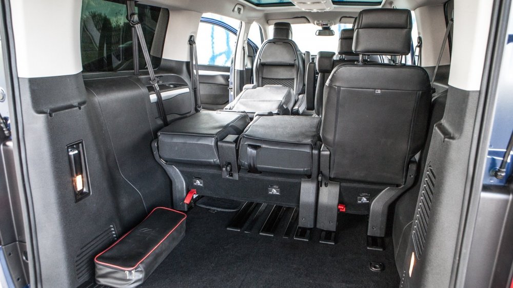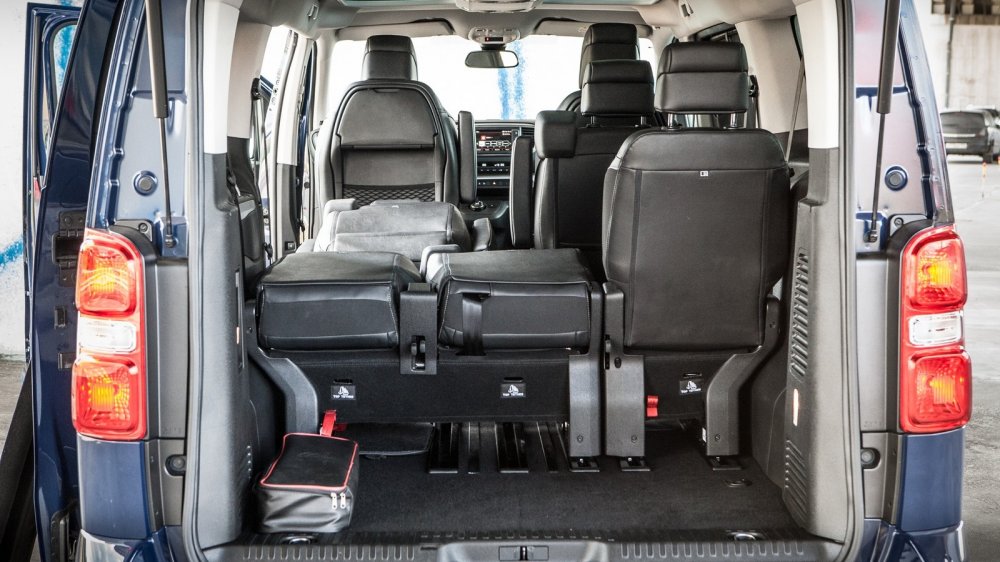 А как обстоят дела с перевозкой багажа? Багажник Hyundai H1 с неподвижным, напомним, третьим рядом, образует емкость в 842 л. Согласитесь, немало. Скорее всего, этого будет вполне достаточно, чтобы вместить чемоданчики встреченных в аэропорту деловых партнеров. А вот SpaceTourer (по крайней мере, в пятиметровом кузове L3) не только предлагает на 147 литров больше, но и позволяет играть им в зависимости от текущих потребностей. Можно сложить спинки задних сидений и грузить багаж на них, а можно просто снять задний ряд (с этим вполне справляется один человек) и получить почти 1 600 литров дополнительно. На случай атомной войны из салона можно извлечь всё, включая столик, и довести доступный для размещения груза объем до 4,5 кубометров!