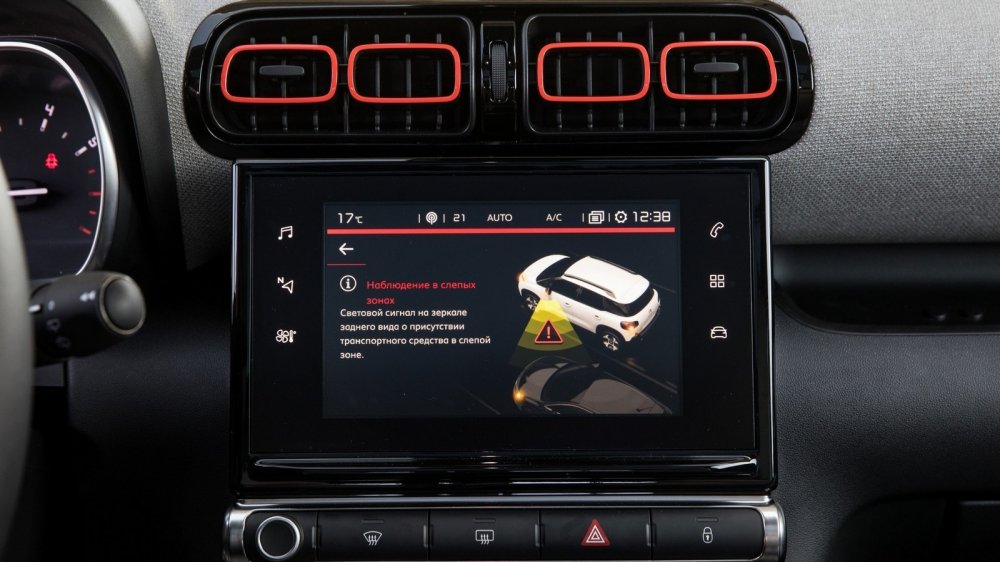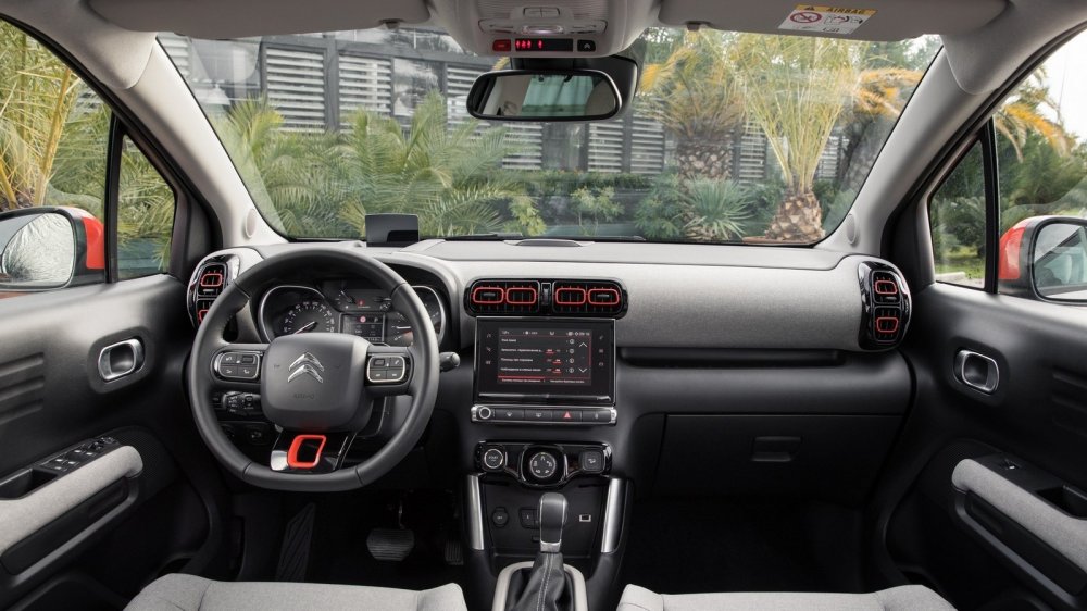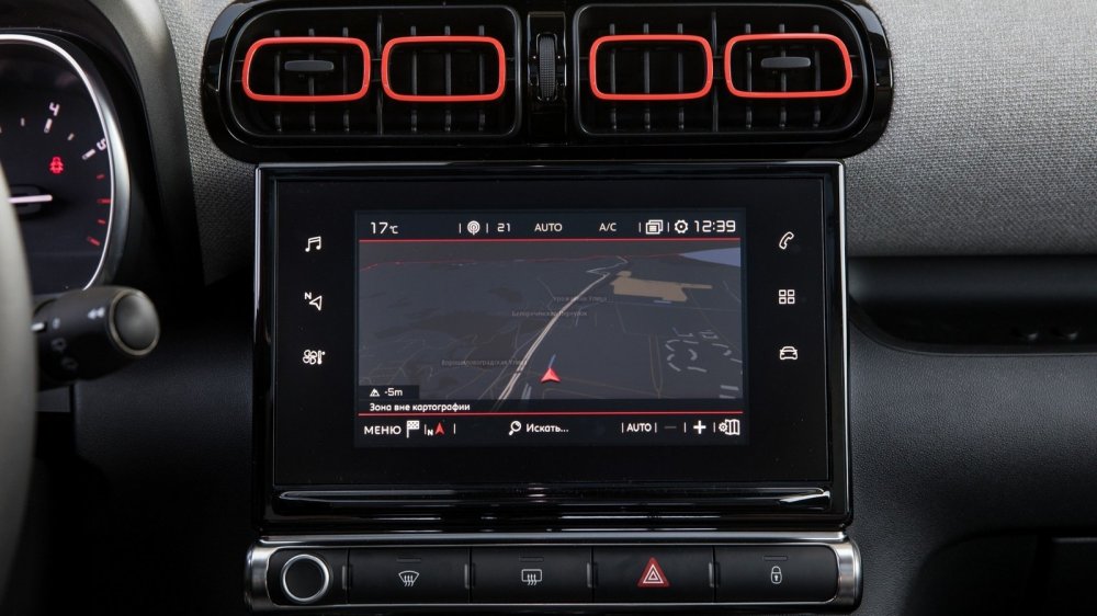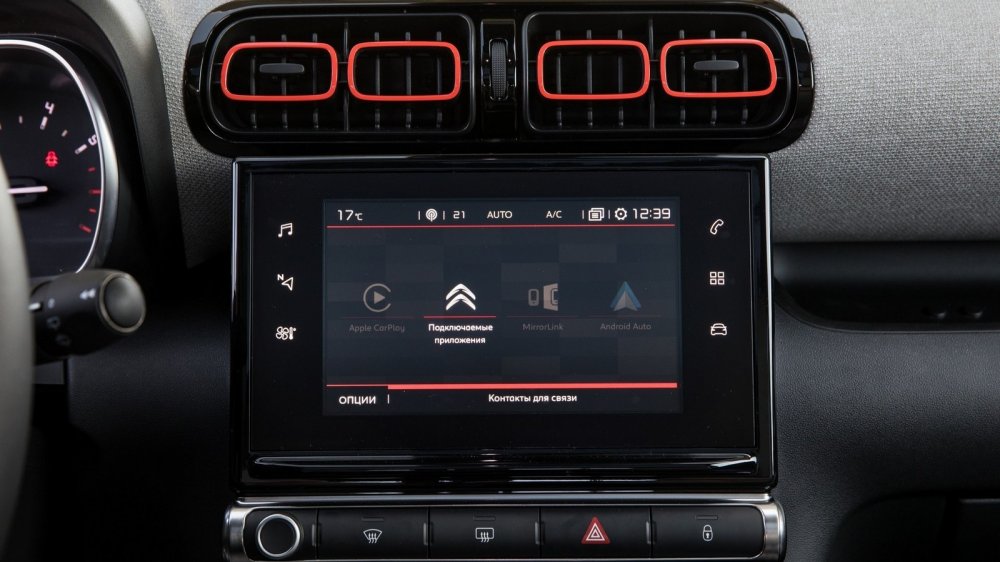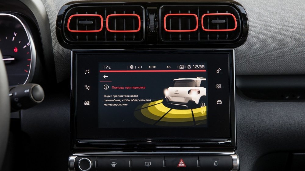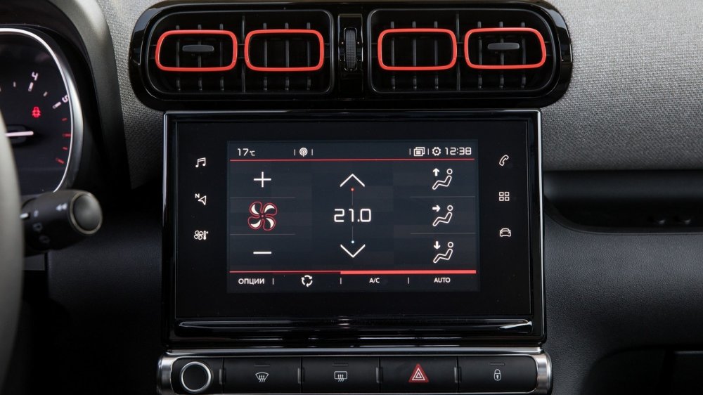 Как и положено автомобилю цифровой эры, C3 Aircross снабжен информационно-развлекательной системой с немаленьким сенсорным экраном. Правда, то, что через этот же экран производится и управление климатом в салоне, меня не слишком порадовало. Например, чтобы переключить кондиционер в режим рециркуляции и пресечь поступление в салон чада от ползущего по серпантину КАМАЗа, нужно сначала нажать на сенсорную кнопку сбоку экрана, вызвать на него меню управления климатом, а затем нажать на соответствующую иконку. На ходу это может получиться не с первого раза. А вот что меня удивило, так это то, что конструкторы проявили французскую прижимистость и пожадничали на средства зарядки разнообразных гаджетов (при том, что медиасистема поддерживает и Apple CarPlay, и Android Auto, и MirrorLink). Увы, в распоряжении экипажа только один USB-слот и одна розетка на 12 вольт. «Маловато будет», даже если учесть наличие такой опции как беспроводная зарядка, ведь в качестве целевой аудитории Citroen видит прежде всего активную и достаточно состоятельную молодежь.