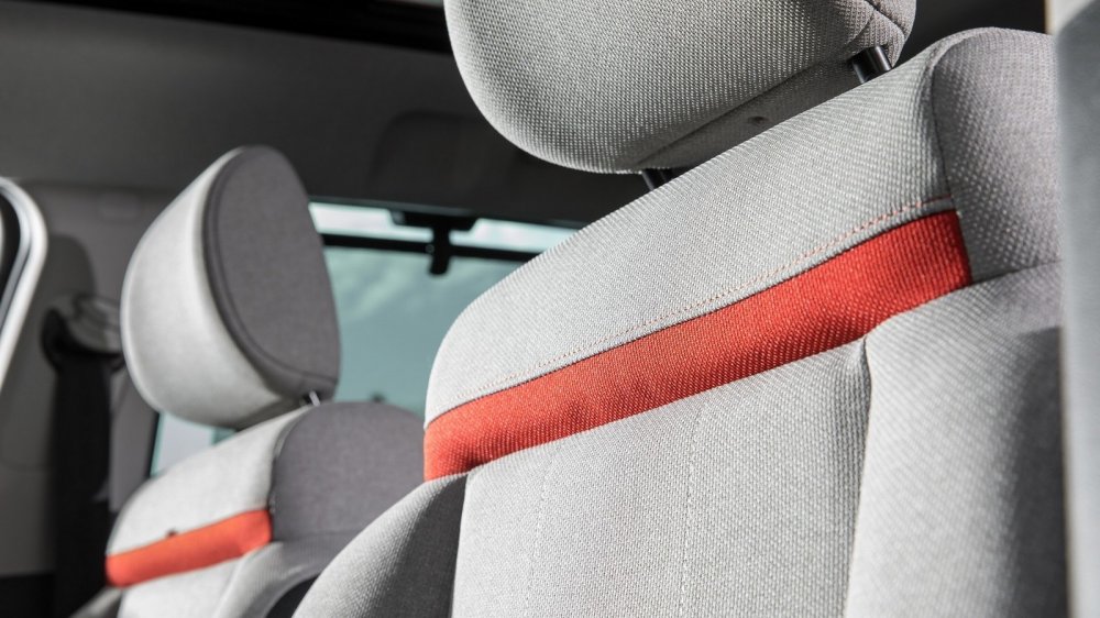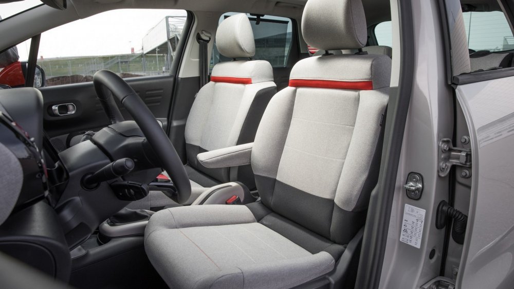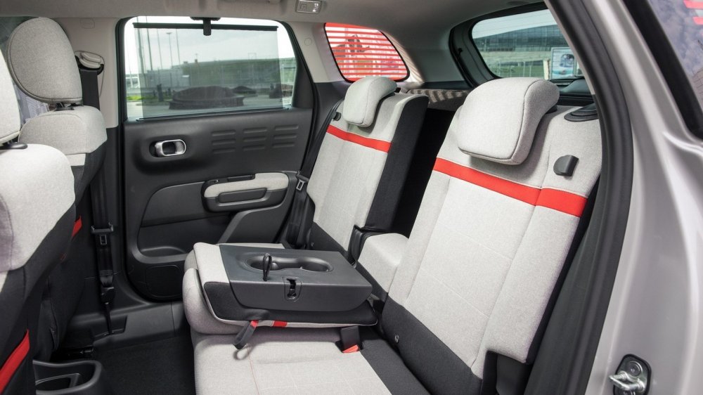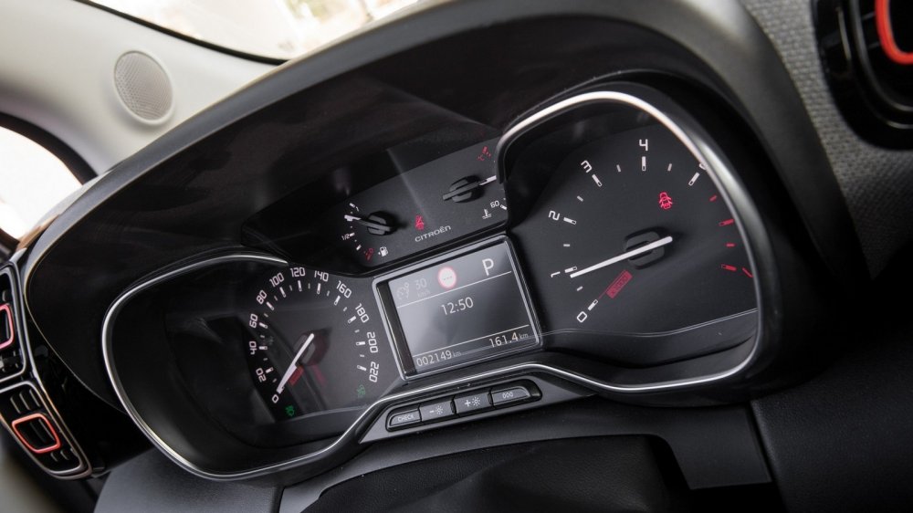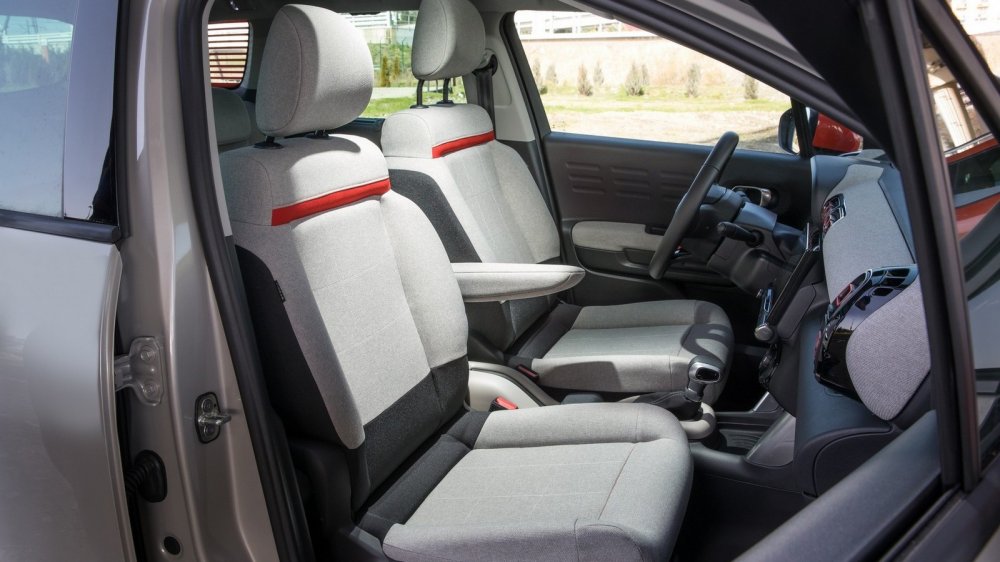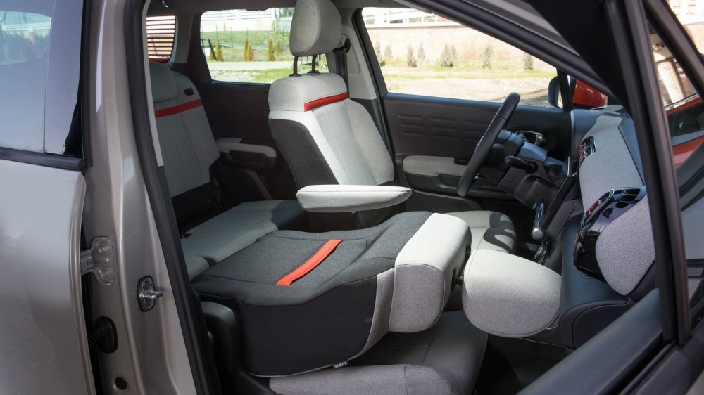Но в целом и архитектура, и отделка салона меня исключительно порадовали. Здесь чувствуется тот самый французский шарм... Например, там, где другие бренды используют кожу, Citroen предлагает специальную ткань на упругой подкладке. Это и выглядит стильно, и на ощупь очень приятно. Впрочем, есть среди вариантов отделки салона и кожа — ну, точнее, экокожа. Но ткань мне понравилась больше... Во всяком случае, в напряженных поворотах горного серпантина в тканевых креслах не так остро чувствуется недостаточность боковой поддержки. А вот что удивило — так это отсутствие подстаканников. И бокса нет, есть подлокотник у водительского кресла.