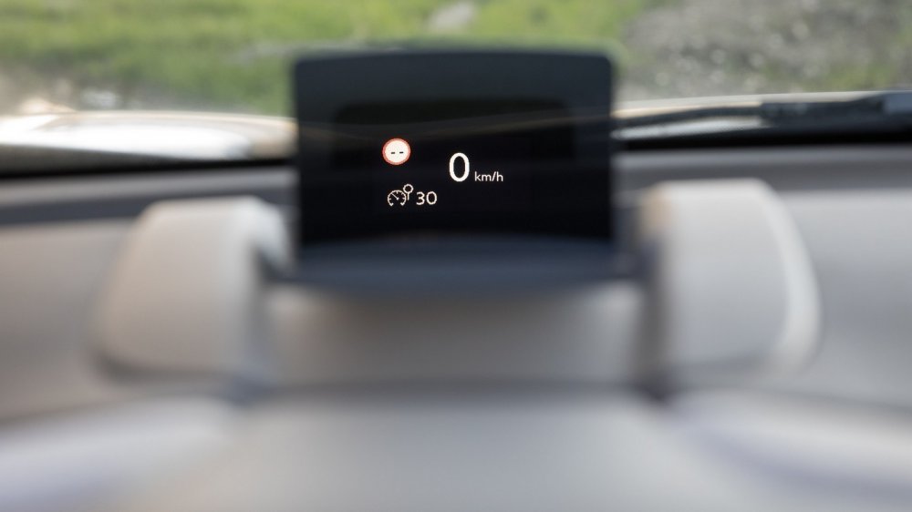 Тема прямоугольника со скругленными углами доминирует и в салоне. Во всяком случае, и дефлекторы вентиляции, и многие кнопки, ступица руля, дверные подлокотники и даже колодцы спидометра и тахометра на приборной доске имеют очертания тех самых прямоугольников со скругленными углами. Сами приборы оформлены достаточно лаконично, но расположенный между ними дисплей бортового компьютера c «альбомной» ориентацией заслуживает самой высокой оценки: он очень информативен и отлично читается. Плюс ко всему, топовые комплектации оснащаются проекционным дисплеем. Он выполнен в относительно бюджетном варианте: изображение проецируется не непосредственно на лобовое стекло, а на небольшой экран за козырьком комбинации приборов, но это не делает его менее практичным. Очень необычно оформлен рычаг ручного стояночного тормоза.