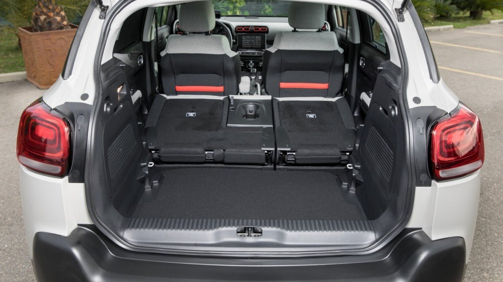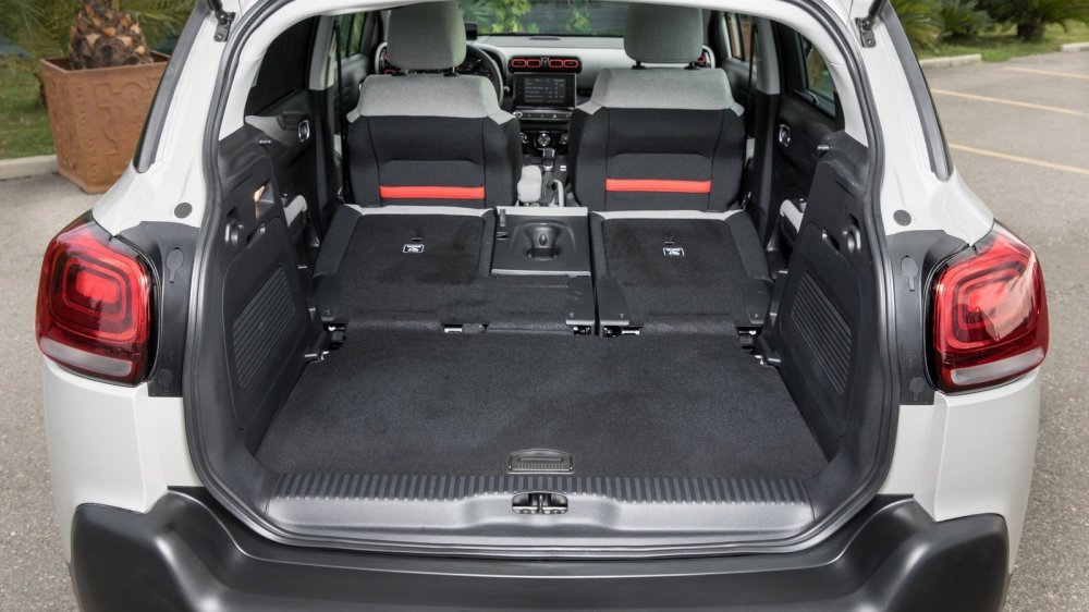 Однако C3 Aircross очень практичен. Во всяком случае, у него очень вместительный багажник, причем его объемом можно «играть». Можно двигать вперед-назад заднее сиденье (диапазон его перемещения составляет 150 мм), а можно убрать фальшпол и нарастить багажник в глубину. Трансформация салона для перевозки длинномеров происходит буквально в одно мгновение, ведь вперед складывается только спинка. Кстати, спинку кресла переднего пассажира тоже можно «уронить», и тогда в салон влезет предмет длиной до 240 см. Для молодых людей, занимающихся активными видами спорта (кайтингом, сноубордом, горными лыжами и прочими) это может быть весьма важно.