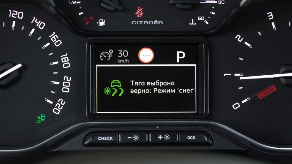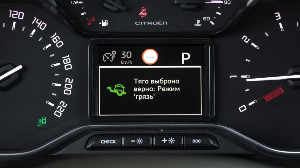 И тут я вспомнил, что коробка имеет спортивный режим: включающая его кнопка расположена рядом с шайбой управления системой GripControl. Ну что, попробуем? Вот, совсем другое дело! Тут же появилось ощущение, что машина корректно «идет за педалью», да и цифры среднего расхода начали понемногу уменьшаться. Тем не менее, стоит признать, что для C3 Aircross всяческий экстрим не то чтобы противопоказан — он скорее для него не органичен.
