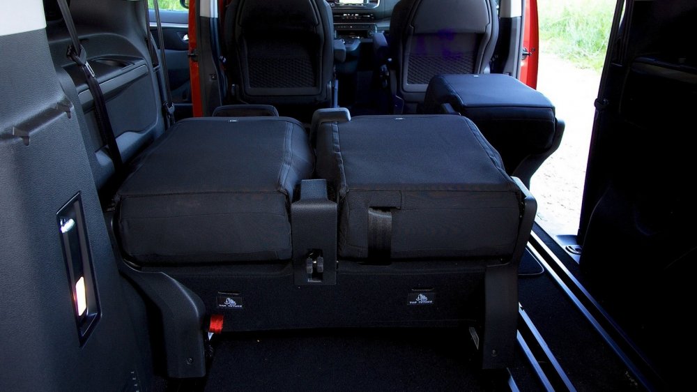 Но у меня задача чуток сложней: в рамках теста запланирована поездка компанией из шести взрослых. Планы у нас наполеоновские — и рыбу половить, и в музей Поленова заехать, и на лошадках покататься, ну и шашлычков пожарить. Велегож — он, конечно, не Сочи, но, как в песенке поется, «шашлычок под коньячок — вкусно очень...». Так что едем на три дня, а вещей у нас получилось немало. И вот тут-то и выяснилось, что возможности SpaceTourer в части трансформации салона и перевозки багажа несколько меньше, чем может показаться с первого взгляда. Просто очень многие варианты конфигурации возможны только при том условии, что вы физически извлечете часть сидений. Снимаются сиденья достаточно легко. Это можно проделать и в одиночку, а уж вдвоем — так и вовсе запросто, но если сиденье снято, нужно его где-то складировать. Проблема лишь в том, что совсем недавно благодаря усилиям нашей доблестной мэрии по борьбе с незаконными постройками, по какой-то причине, распространившейся и на просуществовавшие не один десяток лет ВДОАМовские автостоянки, я остался без гаража. Значит, максимум, что я могу сделать — это сложить спинки двух одиночных сидений и грузить багаж на них. Но доступная для размещения груза площадь пола на уровне бампера остается небольшой, ведь никаких шарниров, позволяющих откинуть сиденье со сложенной спинкой вперед, нет.