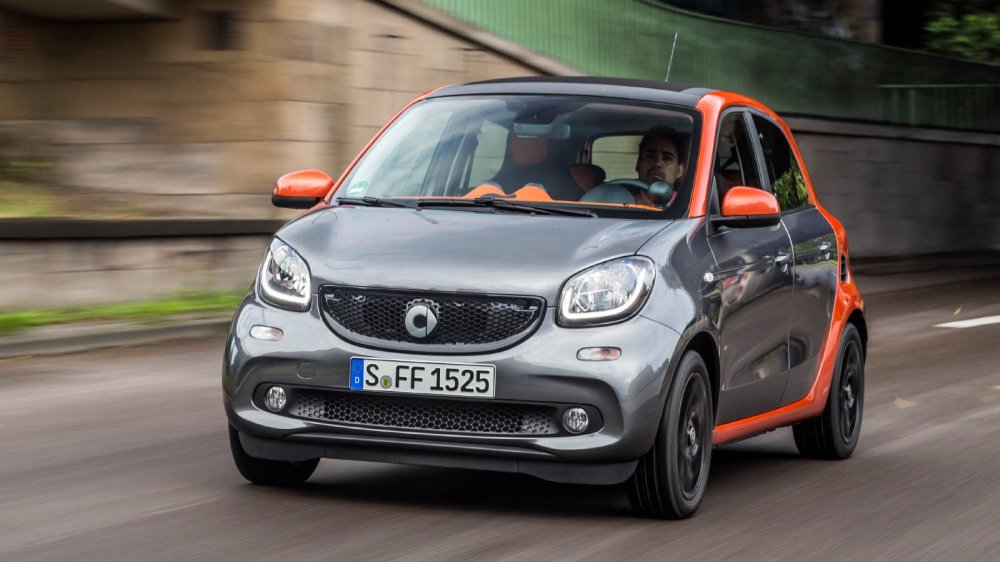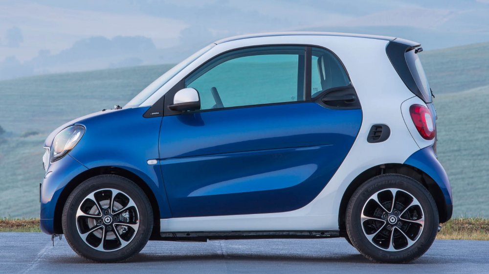 Нынешнее, третье поколение сверхкомпактного автомобиля было разработано Daimler совместно с Renault – Twingo, продающийся в Европе, делит с ним ключевые технические решения и собирается на одном конвейере в Словении с четырехместным smart forfour. Однако концепция smart осталась ровно той же, что и была: в двухместной версии это крошечный заднемоторный хэтчбек длиной в 2,7 метра, а в четырехместной он предлагает задние двери и задний диван, имея меньшие продольные габариты, чем Fiat 500, до которого мы еще дойдем – 3,5 метра. При этом в багажном отделении в любом случае остается минимум 185 литров пространства, а максимально доступный заявленный объем для forfour составляет 975 литров.