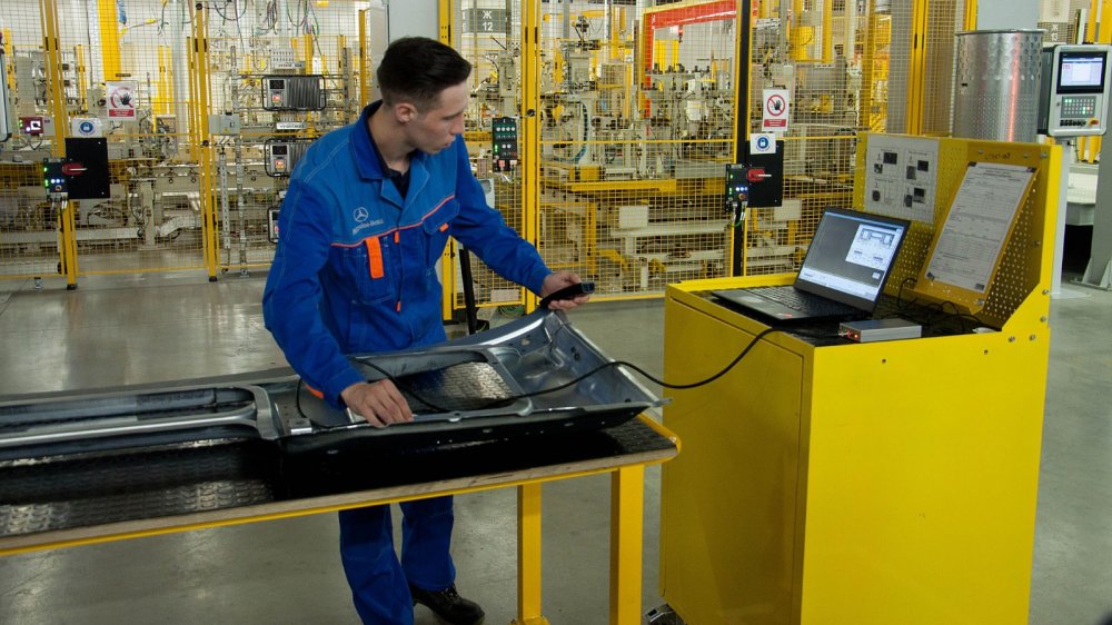 Разумеется, каждую кабину так не проверяют — это слишком долго. Сейчас такой контроль проходит каждая десятая деталь одного вида, но в будущем их количество снизится с 10% до 3%. Пока завод только начал работать, контроль идёт чуть строже.
