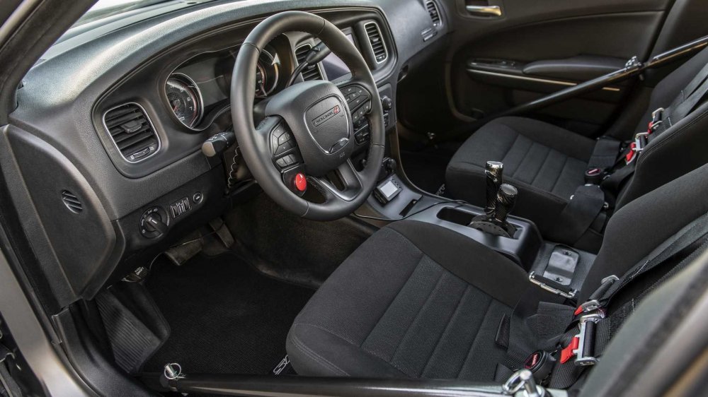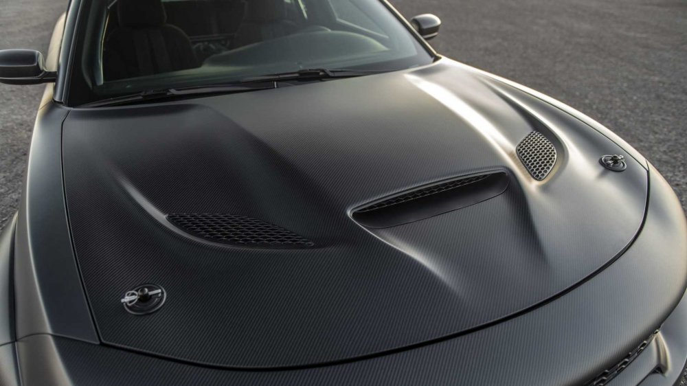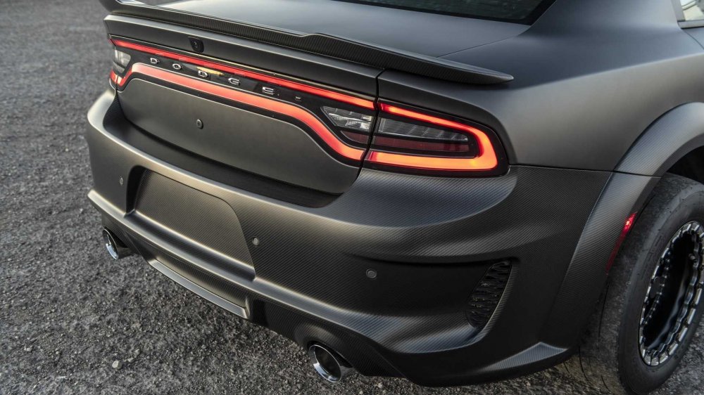В основе Charger SpeedKore лежит кузова полицейской версии седана Charger Pursuit, который снабдили карбоновым Widebody-обвесом, скроенным по любезно предоставленным FCA лекалам (стоковый Widebody появился на Charger летом этого года), при этом передний бампер модифицирован под кастомные системы впуска и выпуска – их, как несложно догадаться, «подогнала» компания MagnaFlow, прославившаяся именно всевозможными коллекторами, глушителями и патрубками. Любопытно, что в трековом режиме работает громкий фронтальный выхлоп с патрубками в колёсных арках, а на дорогах общего пользования задействуется более тихий вариант с выводом на корму.