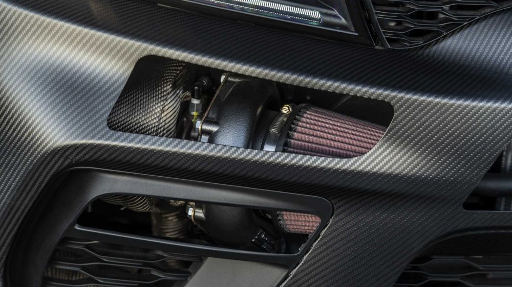 Двигатель, 6,2-литровый V8, позаимствован у купе Challenger SRT Demon, но мотористы из партнёрского ателье Gearhead Fabrications заменили на нём штатную «мясорубку» двумя турбокомпрессорами Precision 6466, а кожух для них сделали мастера SpeedKore. Кастомные головки блока цилиндров подготовила фирма Thitek. Систему питания биоэтанолом Е85 с форсунками Injector Dynamics 1700cc настраивала контора Fore Innovations. На выходе получилось аж 1546 л.с., причём ребята из SpeedKore сказали, что продолжат доработку мотора после выставки, то есть финальная отдача может быть ещё выше.