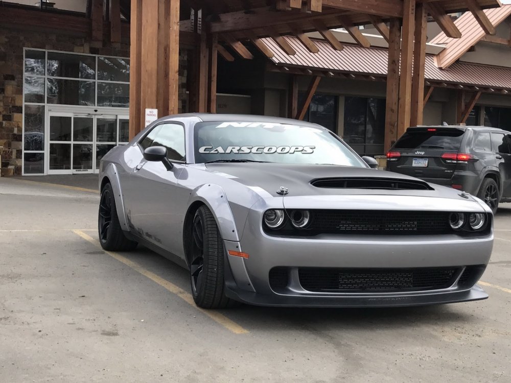 Фотографии этого автомобиля засветились на автомобильном портале Carscoops благодаря читателю Бретту Боргарду, который застал Демона в штате Колорадо. Что можно сказать о внешности автомобиля? На субъективный взгляд автора, новый Challenger Demon выглядит круто. Больше добавить, пожалуй, нечего. Отличить Challenger Demon от 707-сильного Challenger Hellcat можно по новому капоту, широким аркам, слегка обновлённой передней "юбке", ну и конечно же, по "драгстерским" задним шинам.