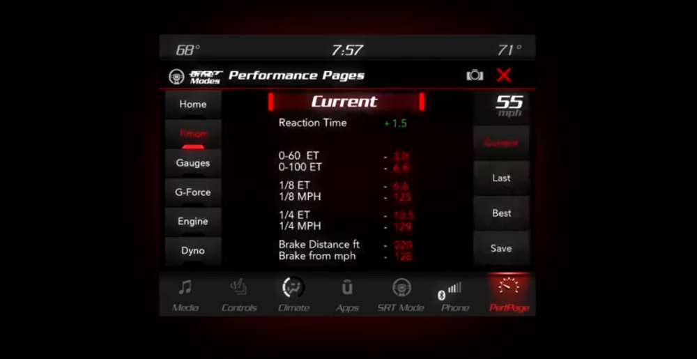 Мало? Ну тогда ещё можно будет взглянуть на то, за какое время Демон разгоняется с 0 до 60 миль в час, с 0 до 100 миль в час, сколько ему нужно времени при прохождении "квотера" и какова его текущая скорость, насколько быстро водитель принимает старт, какие перегрузки испытывает шасси в поворотах. Всю эту информацию можно наблюдать на 8,4-дюймовом экране или же "снять" её с машины и посмотреть за кружкой кофе или бутылочкой пива на компьютере. Кстати, Колёса.ру сделали раскадровку видео, и вуаля! Нам открылись динамические характеристики Dodge Challenger Demon, которые засветились на одном из кадров. Конечно, это пока не официальные данные, но мы то знаем, как оно бывает, и конечно же, производитель их приоткрыл чисто случайно, и чтобы никто ничего не заметил, загрузил видео в разрешении 480p. Хитрецы, мы вас раскусили! :twisted: