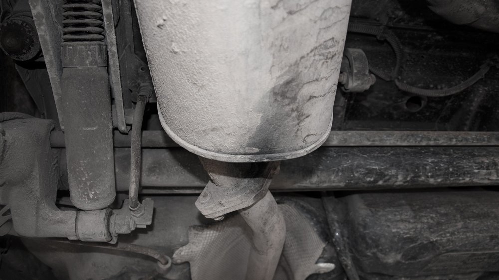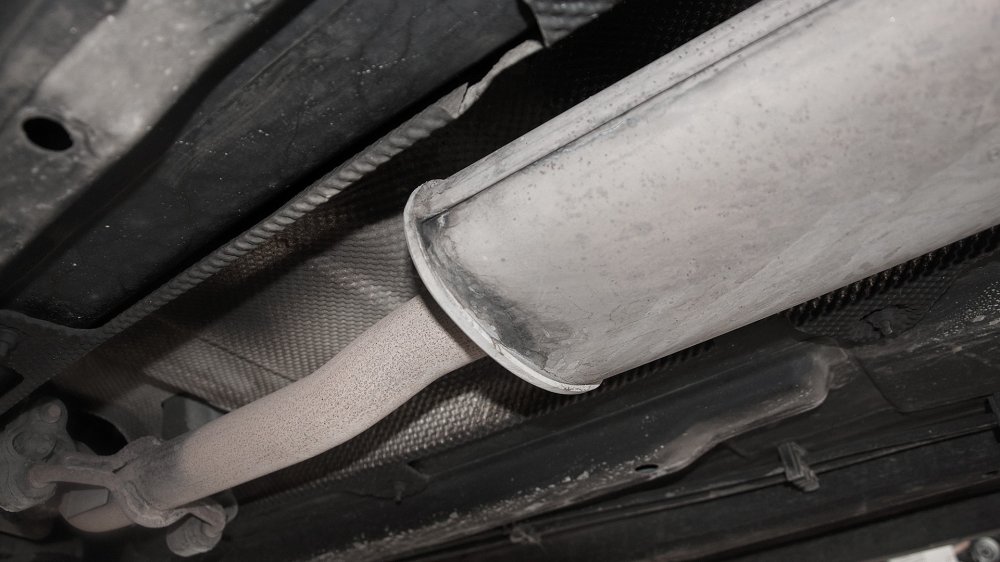 Во-первых, защитное антикоррозионное покрытие днища автомобиля уже растрескалось и потихонечку начинает осыпаться с кузова. Это не значит, что дно уже начинает гнить – оно пока чистое, следов коррозии на нём нет. Но, скорее всего, будет, если антикор не обновить. Тем более что кое-где уже можно увидеть неприличные для полугодовалого автомобиля вещи: и резонатор, и глушитель уже пропускают газы. Те, кто немного знаком с физикой, поняли, что прогар в этих местах выхлопной системе уже обеспечен. Интересно было бы глянуть на неё через два-три года, скорее всего, менять придётся всё, начиная от гофры выпускного коллектора – она пока выглядит хорошо.