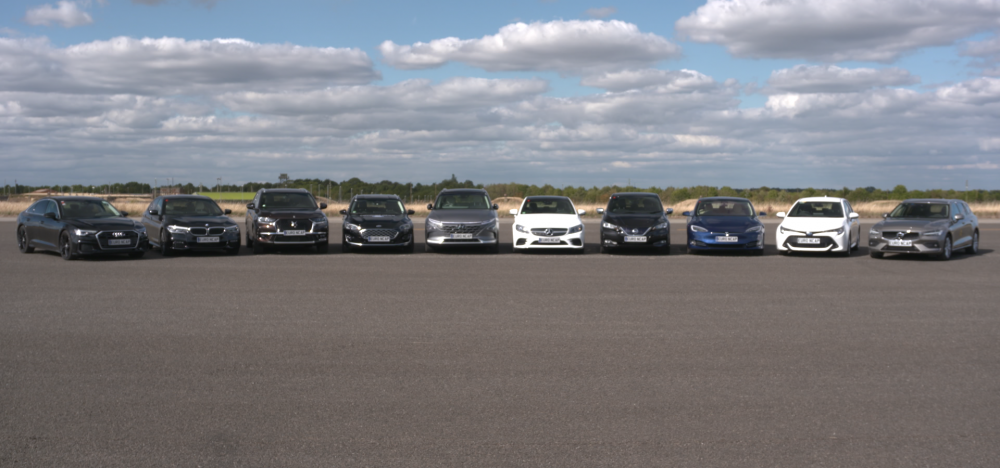 В испытаниях участвовали Audi A6, BMW 5 серии, DS 7 Crossback, Ford Focus, Hyundai Nexo, Mercedes-Benz C-класса, Nissan Leaf, Tesla Model S, Toyota Corolla и Volvo V60. Тесты с подрезанием не смог пройти ни один из автомобилей.
