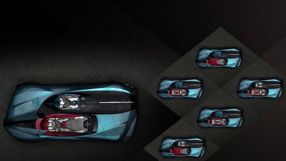 Водительское место в футуристическом суперкаре выполнено в виде открытого кокпита с сиденьем, адаптирующимся под форму тела водителя. Отделка кабины выполнена с помощью комбинации карбона и пластика. Пассажирское отделение закрыто и оснащается комфортабельным креслом с функциями массажа и вентиляции, звуковой панелью и голографическим ассистентом, а в его отделке применяется кожа, дерево и металл. Пол стеклянный и его степень прозрачности можно регулировать.