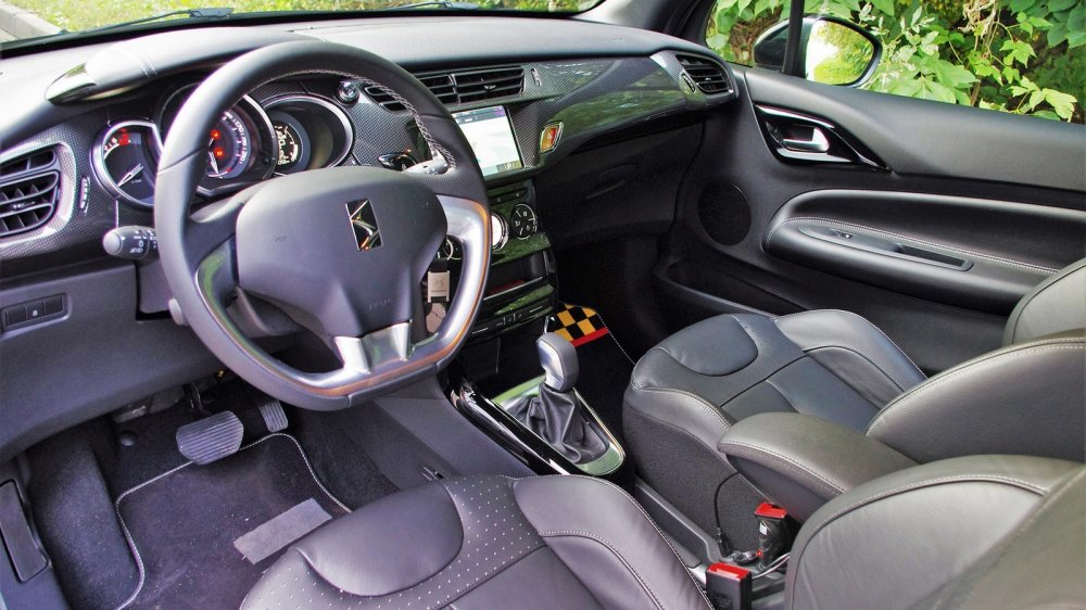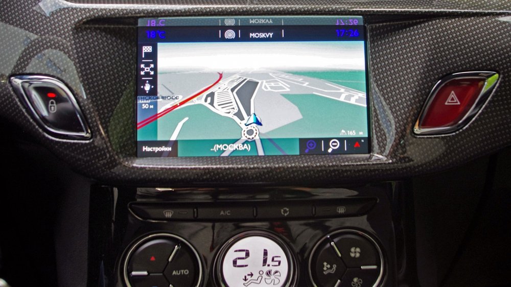 Скромные габариты DS3 оказались совершенно некритичными для моего роста в 185 см. Люка, крадущего высоту салона, к счастью нет, голова не касается черного потолка, а диапазона регулировок руля и кресла в достатке. Небольшую центральную консоль с минимумом кнопок украшает 7-дюймовый тачскрин, с опять же опциональной навигацией и управлением бортовым компьютером, мультимедийкой и телефонами.