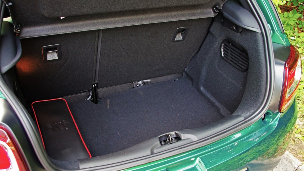 Их спинки раскладываются почти горизонтально, причем нажатием небольших лапок. Никаких тебе проблем с крутилками. А вот центральный подголовник сзади, скорее, из области тонкого французского юмора. Уместятся на диване лишь двое, но кому в этой трехдверной «персоналке» нужен второй ряд? Скорее уж багажник, который можно расширить с 285 до 980 л. Вполне себе для такого малыша.