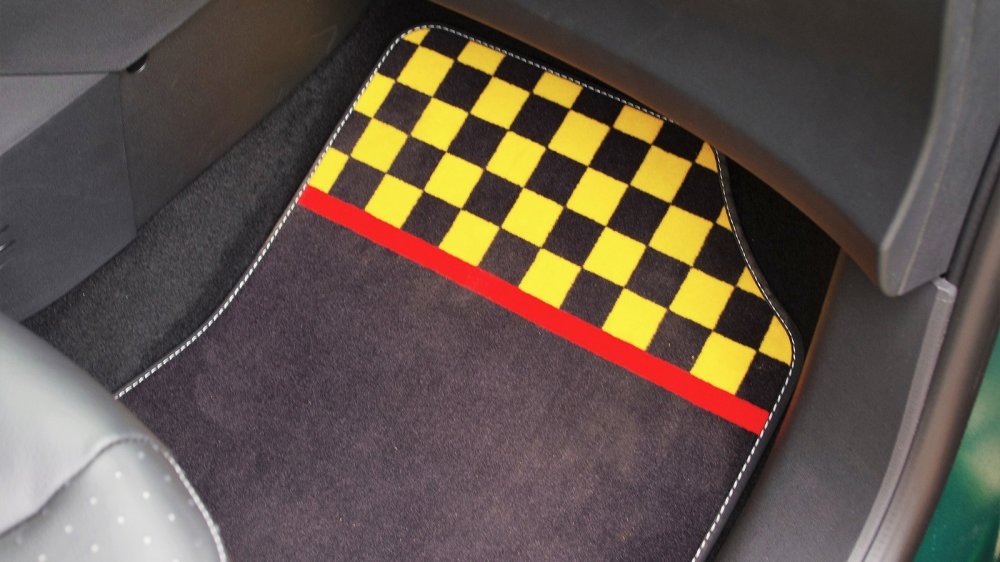 Футуристический стиль букв читается в форточках передних дверей и визуально обрезанных за счет накладного остекления центральных стойках. Плюс разрисовка кузова всевозможными странными и не очень символами, судя по спецификации, ассоциирующимися с виртуальной реальностью. Она же — в графике и на ковриках в салоне.