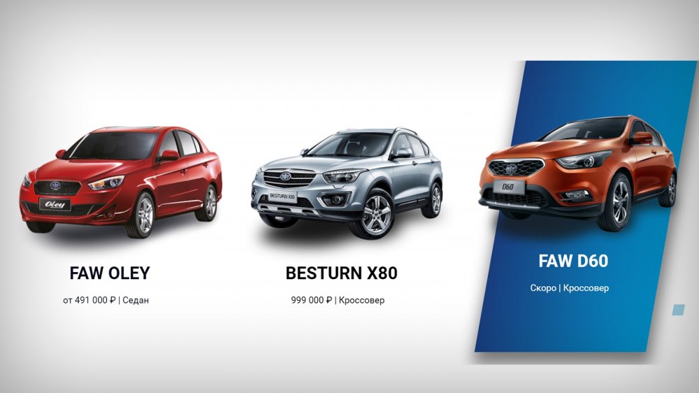 В настоящее время FAW продаёт в России две модели: компактный переднеприводный кроссовер FAW X80, цена на который начинается от 999 000 рублей, и седан Oley — от 491 000 рублей. Продажи весьма скромные: за полгода китайцы смогли реализовать 608 штук "паркетника" и 118 экземпляров седана. Показатели скромные, но по отношению к аналогичному периоду прошлого года очень даже неплохие: прирост составил 216%.