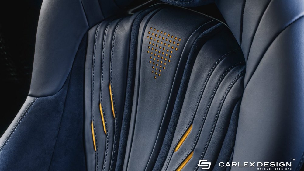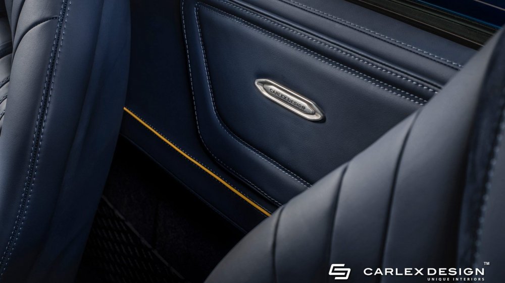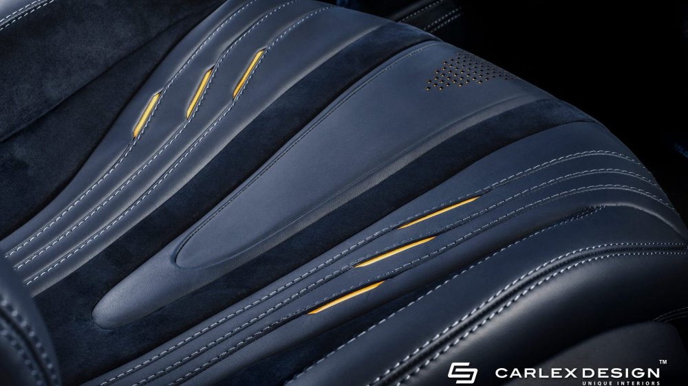 Выбор мастеров Carlex Design для оформления салона суперкара пал на кожу высочайшего качества и алькантару. Темные цветы оживляются контрастными желтыми шнурками и вставками, расположенными под перфорированными участками верхнего слоя. Оригинальное карбоновое колесо отделано перфорированной кожей и алькантарой. Стильная комбинация материалов, узоров и текстур делают этот неординарный родстер по-настоящему уникальным.