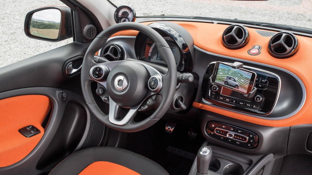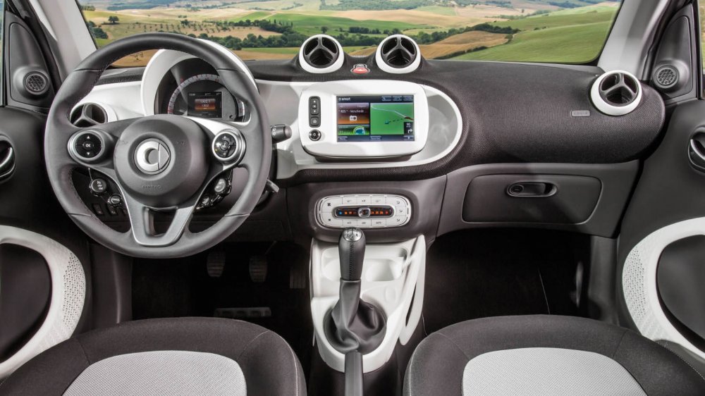 Компоновка у smart тоже сохранилась заднемоторная, и под полом багажника расположен трехцилиндровый мотор M281 в двух вариантах объема и мощности. Базовые smart оснащаются литровым атмосферным двигателем на 71 л.с., а за доплату можно получить турбированную 0,9-литровую версию, которая выдает 90 «лошадок». Разумеется, есть варианты не только с механикой, но и с автоматизированной коробкой передач – причем в отличие от «роботов» на предыдущих поколениях, новый шестиступенчатый агрегат под названием Twinamic, разработанный компанией Getrag, имеет два сцепления и наголову превосходит предшественников по быстродействию.