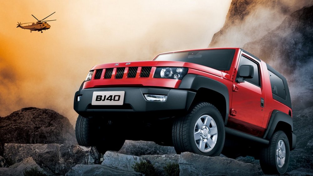 Огромный холдинг BAIC в свое время начинал бизнес с выпуска копий американских «Джипов», и модель BJ40 несет преемственность даже в своем индексе: Beijing Jeep — «Пекинский Джип». Ее же она несет и во внешности: оригинальный «фасад», решенный в стиле примитивизма, не может замаскировать сходства с классическим Wrangler, которое выдают как пропорции, так и отдельные детали вроде дверей, навешенных на наружных петлях, пластиковых расширителей колесных арок и такого же «колпака» в задней части трансформируемого кузова.