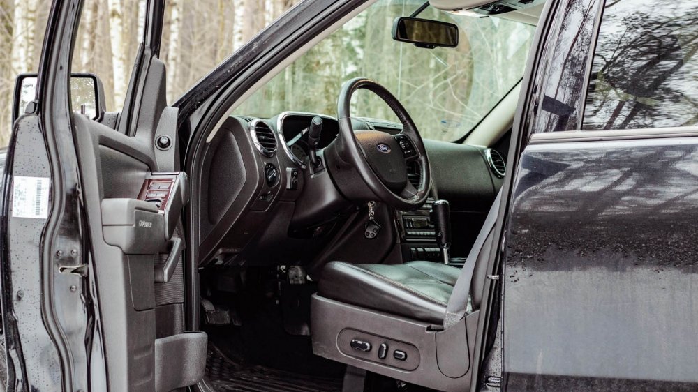Забираясь внутрь, чувствую себя скалолазом, которого лишили поддержки: облегчающий посадку поручень на передней стойке положен лишь пассажиру. Впрочем, быстро понимаю, что подвиг того стоил. Монументальный интерьер Explorer похож на домик лесника: не пышет дизайнерскими изысками и слегка грубоват на ощупь, но освоившись, понимаешь, что тебе и пятерым твоим друзьям здесь весьма рады.