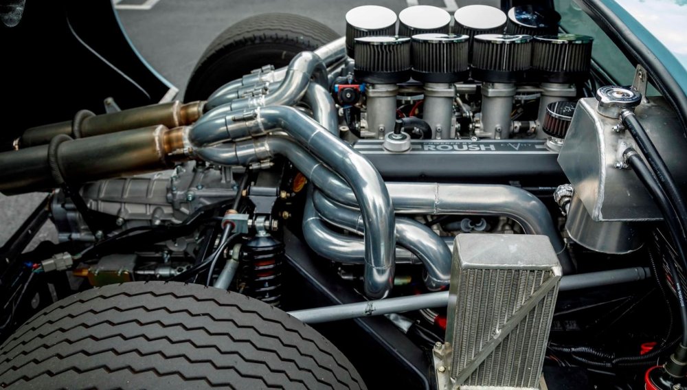 Визуально реплика действительно очень точно воспроизводит оригинальный Ford GT40, но у неё более современная техническая начинка. Так, вместо древнего 7,0-литрового V8 из гонок NASCAR, установлен 8,4-литровый кастомный движок от тюнинг-ателье Roush Performance мощностью свыше 600 «лошадей», а в паре с ним трудится 5-ступенчатая «механика» RBT/ZF вместо оригинальной «четырёхступки».