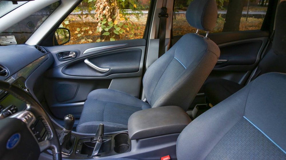 Если увидите потерянные или поврежденные отвёрткой шурупы крепления подлокотника – не пугайтесь. Видимо, владелец решал типичную для S-Max проблему с приводом ручника, о котором я чуть подробнее расскажу ниже.
