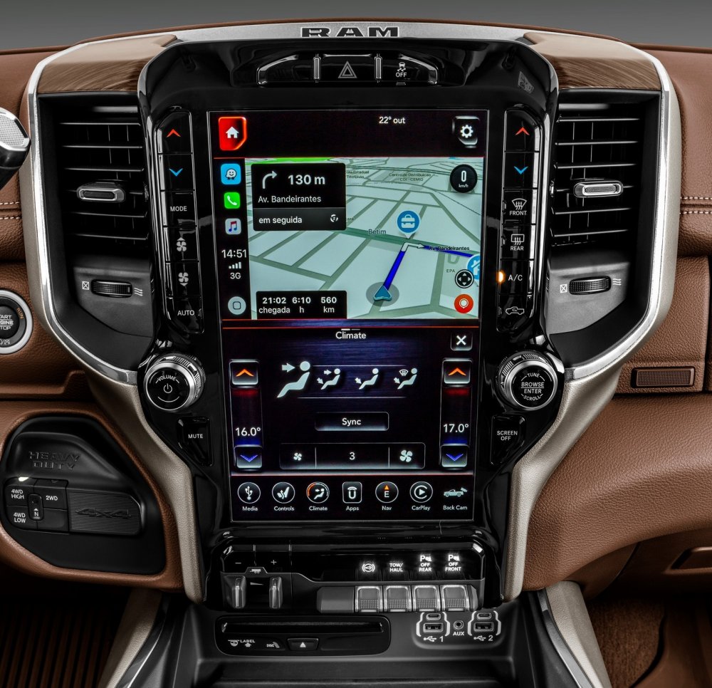По данным Bloomberg, полученным из анонимного источника, большой фордовский пикап 2021 модельного года порадует покупателей большим горизонтально ориентированным экраном с диагональю не менее 12 дюймов, то есть точно не будет в этом плане уступать пикапу Ram, у которого, однако, топовый 12-дюймовый монитор установлен вертикально. Это значит, что центральная консоль Форда подвергнется серьёзной ревизии и воздуховоды будут перенесены (скорее всего, вниз), чтобы освободить место под «телевизор».