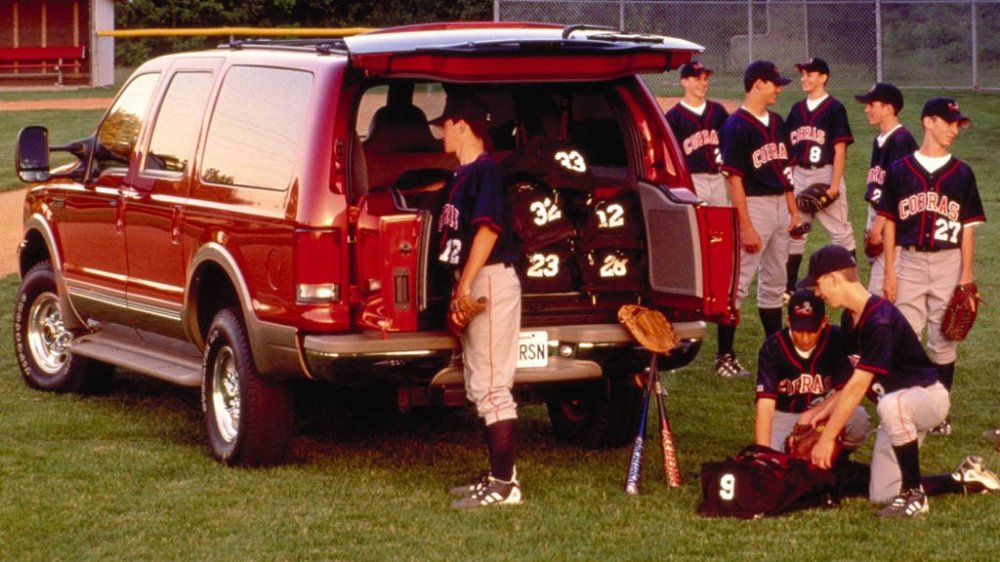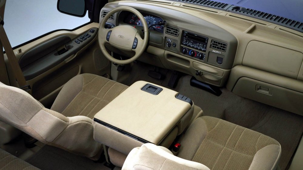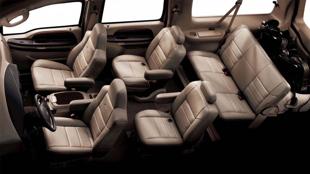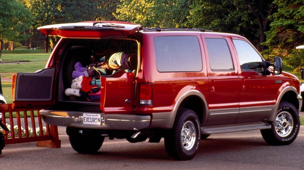 Как вообще родилась концепция такой машины? Ответ прост: Excursion задумывался как конкурент полноразмерным SUV от GM вроде Chevrolet Suburban, но фордовцы решили положить конкурентов на лопатки, предложив покупателям машину, которая будет превосходить соперников во всем. Разработка внедорожника на базе пикапа была не в новинку ни для GM, ни для Ford – по этому принципу, к примеру, уже был создан Expedition, который и по сей день существует и продается в США. Однако для новой машины фордовцы взяли за основу не «обычный» F-150, а тяжелую версию Super Duty. Именно этим и объясняется все: и габаритная длина почти в 5,8 метра, и огромные моторы в подкапотном пространстве… да и недолгая жизнь модели тоже. Ее сгубил очередной топливный кризис: 170-литровый бак опустошался слишком быстро, а регулярно заполнять его, чтобы возить детей в школу, было слишком дорого даже для США.