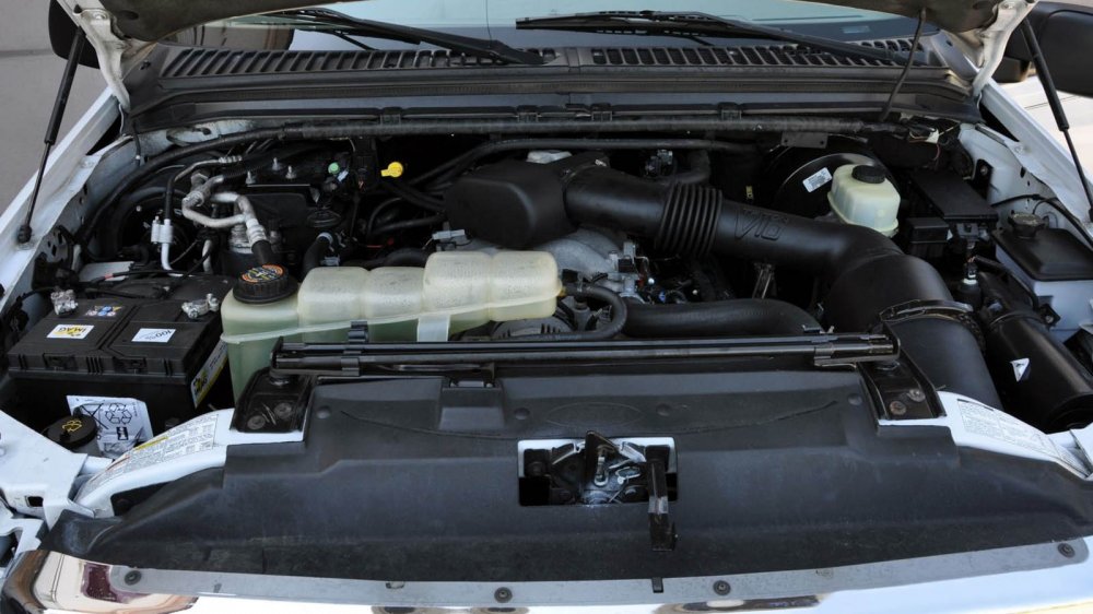 Выбор двигателей у Excursion довольно широк: в списке значатся два бензиновых мотора и два дизельных. Первые относятся к семейству Modular и тесно связаны между собой: по сути, 6,8-литровый V10 – это 5,4-литровый V8 с парой дополнительных цилиндров. Моторы вполне простые и надежные: невысокая степень форсировки с двумя клапанами на цилиндр, отсутствие наддува, распределенный впрыск и чугунный блок обещают хороший ресурс при нормальном обслуживании. ГРМ здесь цепной – это, правда, не всегда идет на пользу, так как безденежный владелец может счесть его вечным. Ориентироваться здесь, как обычно, стоит не на репутацию машины, а на ее возраст – и при покупке заложить запас на обслуживание. Ведь нюансов тут хватает: к примеру, замена свечей, особенно на V10 – та еще задачка.