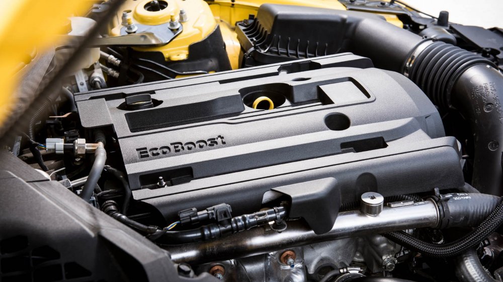 С моторами у Mustang все хорошо… Было бы, если бы они производились в России. Но поскольку они выпускаются в США, Канаде, Испании и других странах, а к нам попадают уже установленными под капот, обходится это очень недешево. Речь прежде всего идет, конечно же, о «настоящем» V8, без которого трудно представить истинный масл-кар. Пятилитровая «восьмерка», устанавливаемая на Mustang GT – это результат эволюционного развития семейства Modular. Она носит имя Coyote и имеет алюминиевый блок с чугунными гильзами (в «гражданских» вариантах исполнения), систему VCT, изменяющую фазы газораспределения на впуске и на выпуске, кованый коленвал и усиленное в целом «железо», позволяющее снять с нее 435 л.с. В 2018 году и Mustang, и двигатель претерпели рестайлинг, в результате которого второй получил комбинированный впрыск (к распределенному добавились форсунки непосредственного впрыска), увеличенную аж до 12 единиц степень сжатия и новое плазменное напыление стенок цилиндра, позволившее отказаться от гильз и увеличить за счет этого рабочий объем (с 4 951 до 5 038 кубических сантиметров). Отдача выросла до 460 «лошадей», но… нам все это пока не слишком интересно.