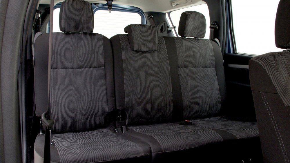 В ней одна фронтальная подушка безопасности, цельная спинка сидений третьего ряда и 87-сильный восьмиклапанный вазовский мотор, но зато есть кондиционер. Впрочем, максимальный вариант оснащения обойдется лишь на 70 тысяч дороже, обладая вдобавок к имевшемуся 106-сильным 16-клапанным мотором, двумя фронтальными подушками, полным набором электростеклоподъемников, подогревом передних сидений и раздельной спинкой третьего ряда.