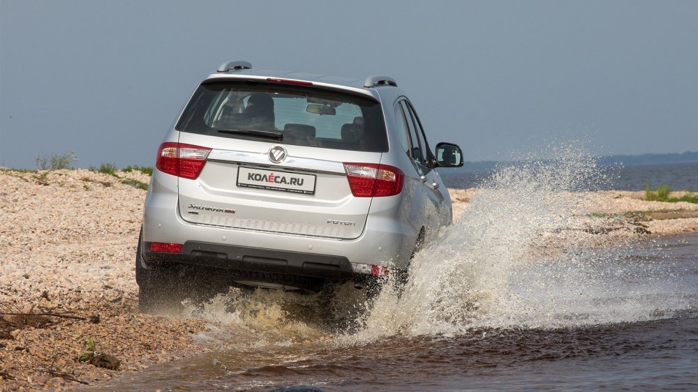Sauvana может преодолевать броды до 800 мм глубиной, дно в этих лужах было плотное, и максимум, что нам грозило — это проехать через них слишком быстро, принеся духу лужи жертву в виде сорванного волной номерного знака. Трасса по галечному пляжу на берегу озера Ильмень тоже оказалась на редкость простой. Тем не менее, готов подтвердить: Foton Sauvana вполне подходит на роль транспортного средства для любителей рыбалки, охоты, автомобильного туризма и прочего активного отдыха. Причем то, что внутреннее наполнение модели состоит из агрегатов и систем известных международных компаний — Aisin, ZF, Continental, BorgWarner, Bosch, DANA, Delfi, Hitachi, прекрасно известных нашим автомеханикам, можно отнести к безусловным плюсам.