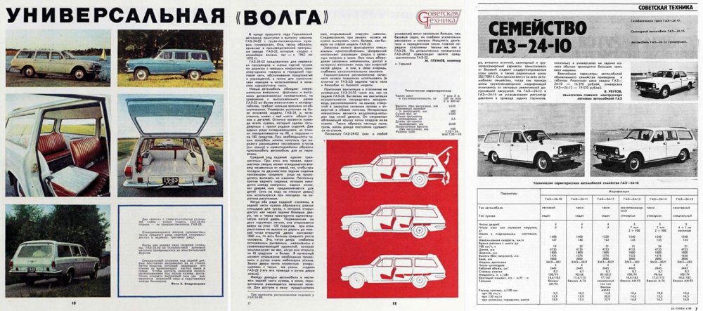 | Журнал «За Рулём» представил новый универсал в февральском номере 1973 года. Про его модернизированную версию 24-12 скупо вспомнили только в 1988 году, когда обновлённый «сарай» уже вовсю выпускался |