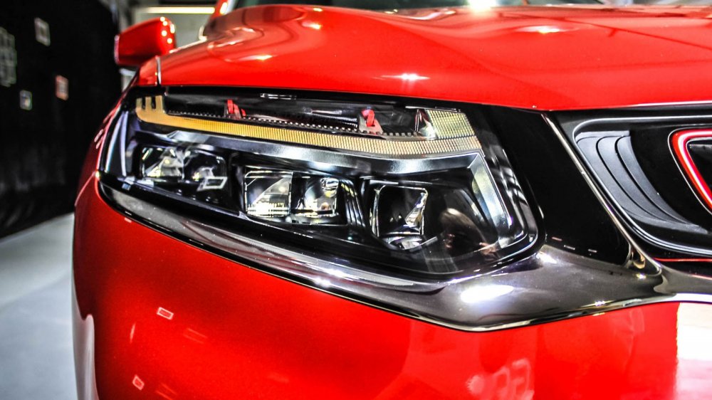 Автомобиль получил матричные светодиодные фары, довольно агрессивный передний бампер, рельефные выштамповки на капоте и боковинах, а также задний бампер с двумя сдвоенными патрубками выхлопной системы.