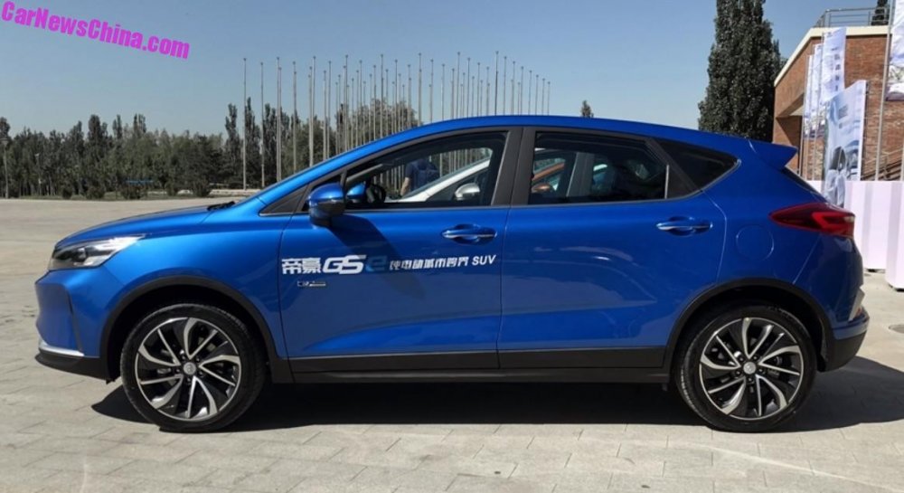 Фотографии новинки засветились на известном портале Carnewschina. Судя по ним, электрокар действительно очень сильно похож визуально на кросс-хэтч Emgrand GS с классическим двигателем внутреннего сгорания, однако есть и отличия: электрическая версия получила обтекаемую решётку радиатора и новый передний бампер.