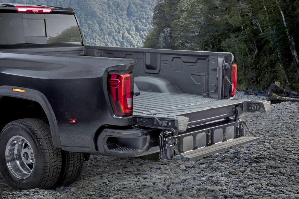 Ещё одна фирменная фишка – задний борт-трансформер с откидной секцией-лотком, которую можно использовать как подножку. Кроме того подножки встроены в углы заднего бампера, но такие есть и у Chevrolet Silverado HD.