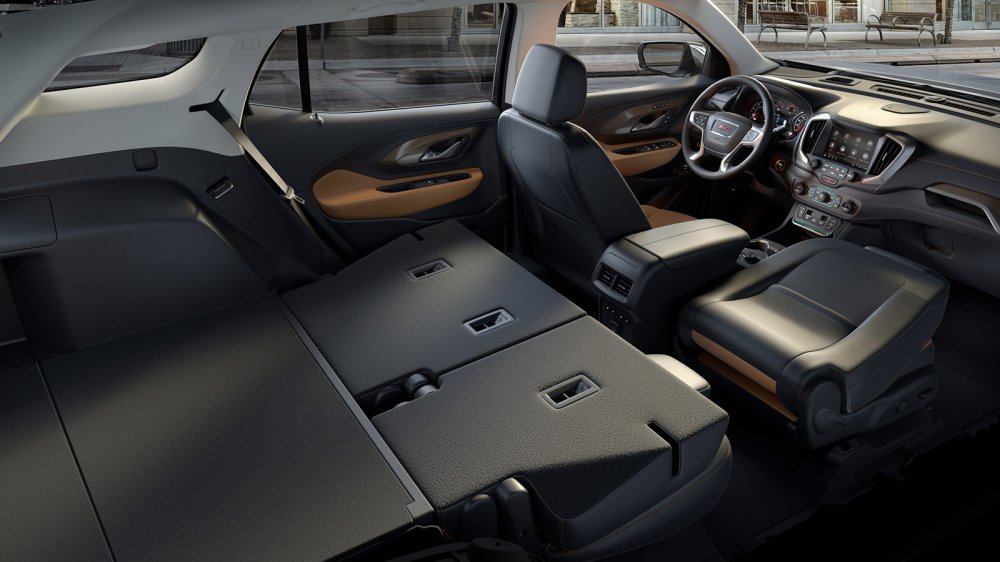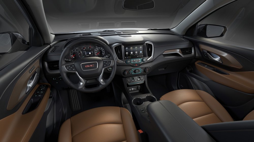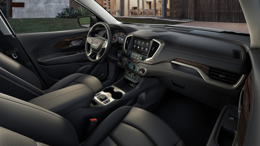 Интерьер автомобиля, так же как и внешность, был переформатирован и избавлен от архаичного наследия прошлой генерации GMC Terrain. Абсолютно новая приборная панель и рулевое колесо стали выглядеть компактнее и лаконичнее, мультимедиа с сенсорным дисплеем (доступны 7- и 8-дюймовые экраны) позволила распрощаться с некоторыми физическими органами управления.