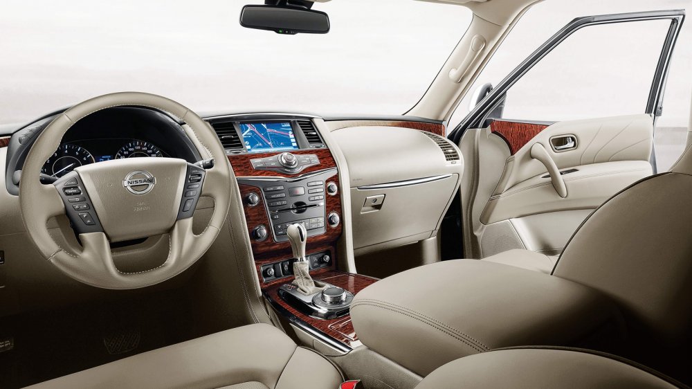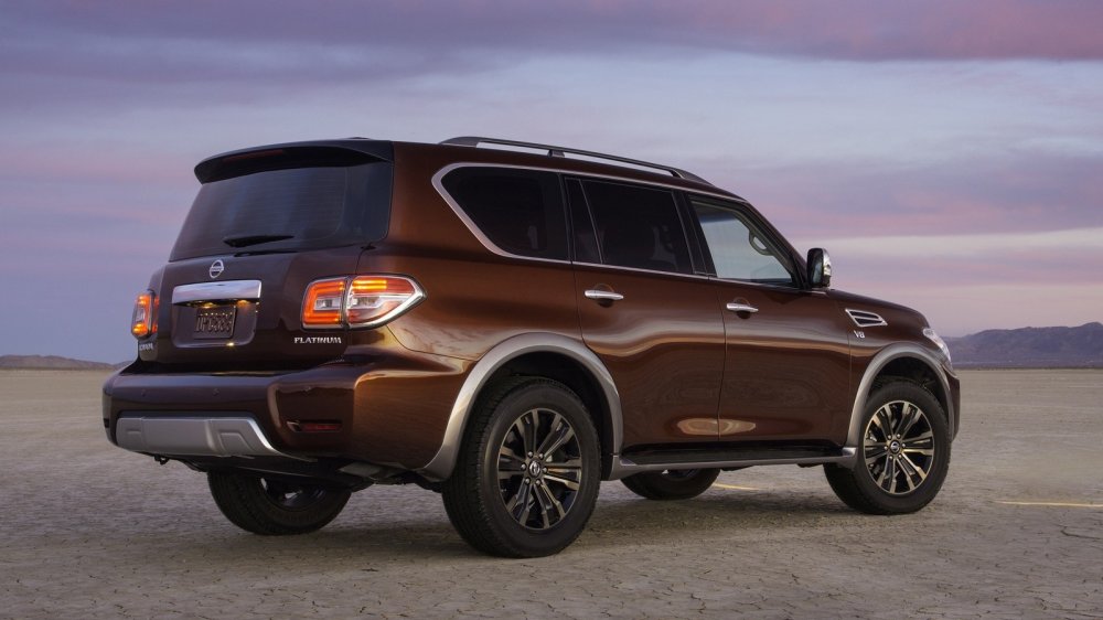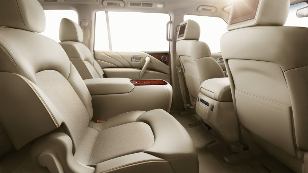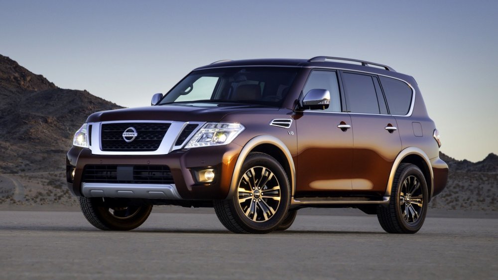 Автомобиль, знакомый нам как старый Infiniti QX56, — самый возрастной участник обзора: он выпускается почти без изменений с 2003 года, и его вот-вот настигнет смена поколений. Есть опасения, что с Армадой произойдет примерно то же, что с моделью Pathfinder, превратившейся из полноценного внедорожника в кроссовер, но пока в Америке еще доступна старая добрая Armada, соплатформенная с пикапом Titan и имеющая самый солидный в нашей группе дорожный просвет.