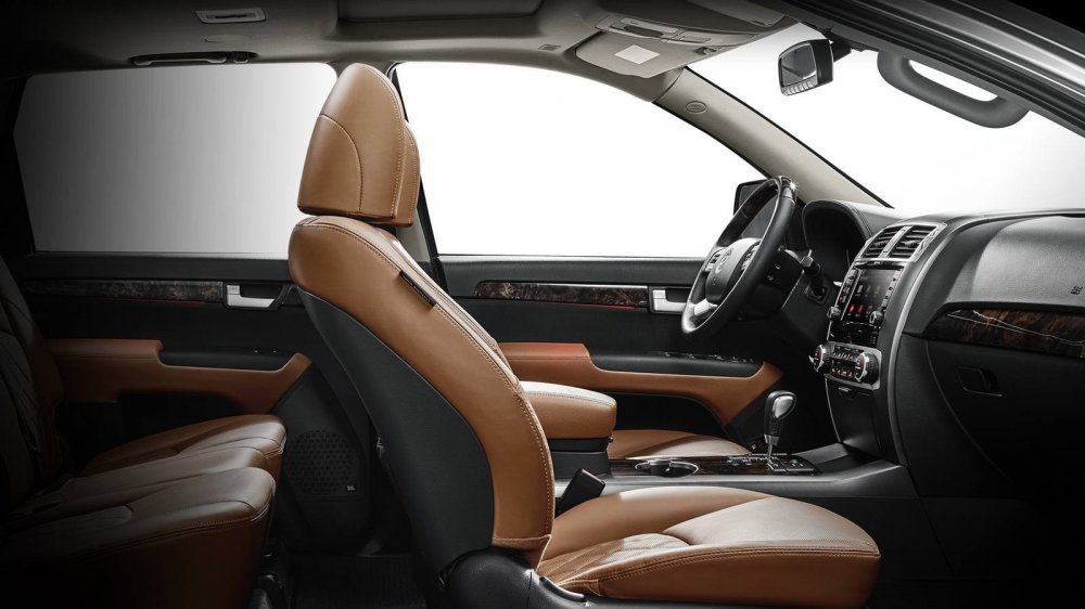 Дизельный V6 уже несколько лет назад остался для Mohave единственным – раньше можно было купить и машину с бензиновым агрегатом той же компоновки. Трехлитровый двигатель с чугунным блоком, турбонаддувом и непосредственным впрыском common rail выдает 250 л.с. и 549 Нм момента, и учитывая, что Mohave чуть легче Haval H9 – снаряженная масса составляет около 2,2 тонны – его энерговооруженность оказывается выше. Однако независимая подвеска – не единственная особенность внедорожника от Kia: в базовой версии полный привод тут подключаемый, а понижающего ряда нет вовсе. За постоянный полный привод, понижайку, задний самоблокирующийся дифференциал и заднюю пневмоподвеску придется доплатить.
