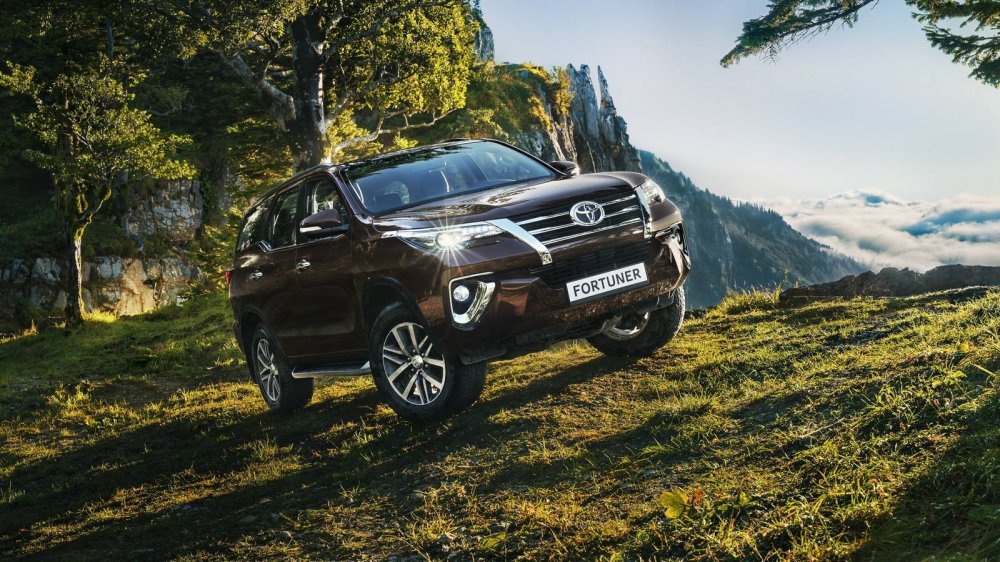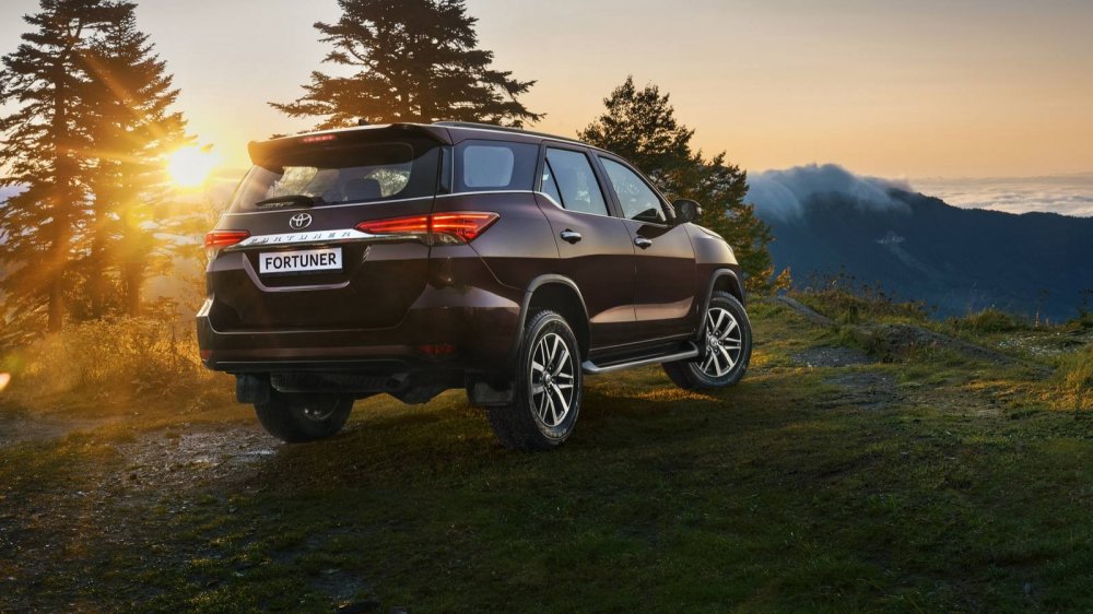 Стартовая цена в 2 172 000 рублей для исполнения Стандарт, как мы уже поняли, во многом демонстративная: ручная коробка передач, минимум хрома во внешности и даже штампованные диски вместо легкосплавных. Перчаточный ящик – без охлаждения, руль – без кожаной отделки, а вместо полного набора подушек безопасности – всего три: две фронтальные и коленная для водителя. Дизельный Fortuner в версии Элеганс начинается с отметки в 2,8 миллиона рублей: даже по сравнению с бензиновым Комфортом здесь будет диодная головная оптика, климат- и круиз-контроль, а также обогрев зоны покоя стеклоочистителей. Топовая комплектация Престиж за 3 031 000 рублей снаружи выделяется хромированными дверными ручками и 18-дюймовыми колесами, а внутри – автоматическим режимом стеклоподъемников, электроприводом крышки багажника, кожаным салоном и электроприводами водительского кресла.