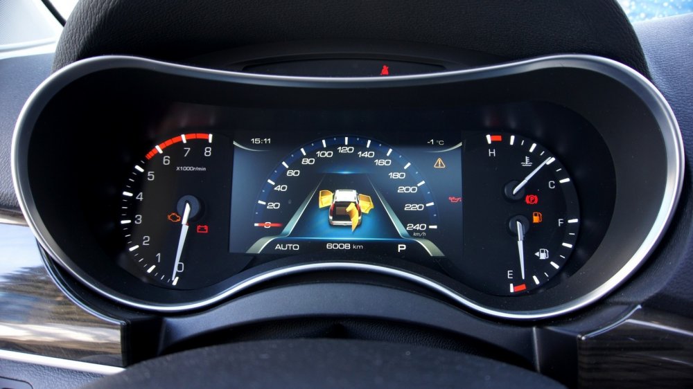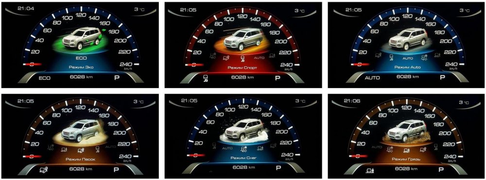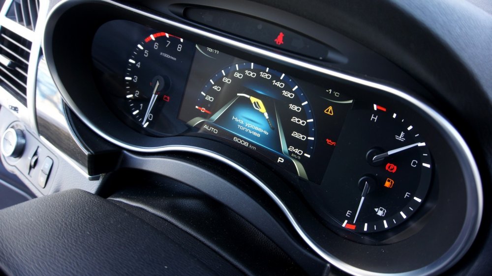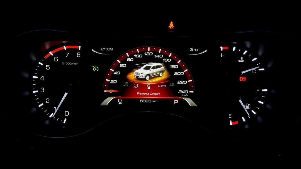 Классический двухшкальный дисплей дорестайлингового H9 сменился на полуэлектронный. В его центр, потеснив по хордам дисковые шкалы механических стрелок, влез крупный 7-дюймовый экран со спидометром и разными анимированными подсказками.