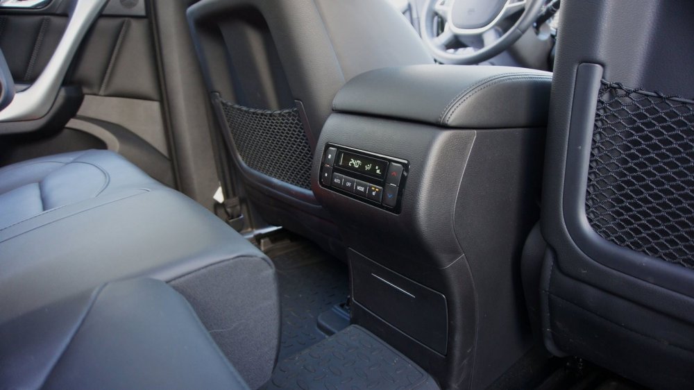Пассажирам заднего ряда доступно очень многое. Во-первых, конечно, роскошный простор и регулируемые продольно и по углу наклона спинки кресла. Во-вторых, климатический блок с подогревом сидений (и нормальными двуступенчатыми кнопками, в отличие от первого ряда, о чём чуть ниже), с собственной регулировкой температуры и направлений потоков воздуха. Удобства посадки и размещения троим добавляет почти ровный пол, а двоим — многофункциональный подлокотник в спинке дивана. Зарядить гаджеты помогут спрятанные в пепельнице гнёзда USB и розетка на 12 вольт. Но отмечу, что разъём USB в переднем подлокотнике практически не заряжает телефон, предназначаясь лишь для мультимедийного подключения.