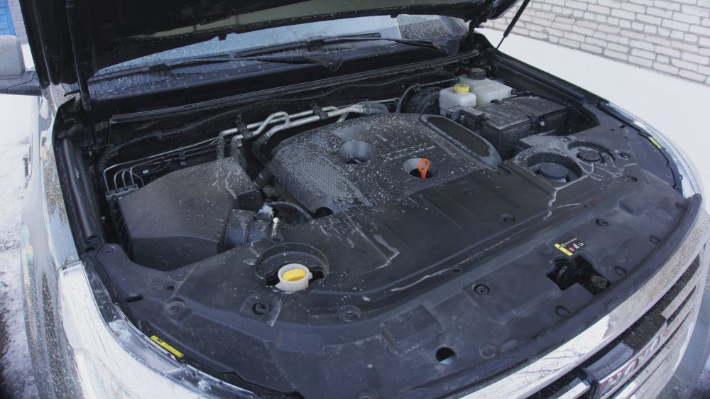 Бензиновый мотор нашего Haval H9 — с непосредственным впрыском и турбонаддувом, с двойной системой изменения фаз газораспределения. По заверению производителя – собственной разработки, а не заимствованный клон или лицензионник. В сравнении с дорестайлом двухлитровый движок вырос с прежних 218 до 245 сил. Мотор не склонен бешено жужжать: максимальный крутящий момент в 350 Нм достигается в диапазоне 1 800 — 4 500 об/мин. Показатели неплохие сами по себе, однако российский консервативный покупатель сразу почешет в затылке: «а ведь Prado хоть и полегче на 200-300 килограммов, но там с базового мотора 2,7 л гуманно снимают всего лишь 163 силы и 246 Нм…»