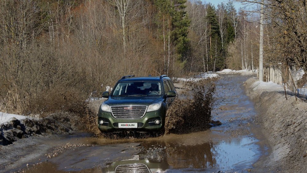 Ходовые возможности Haval H9 не ограничиваются городскими сугробами. Он вполне подойдет любителям выездов на не слишком загаженную шашлычниками природу, каковую можно найти лишь там, куда побоится лезть разная паркетная полно- и тем более моноприводная "шушера". Правда, нужно учитывать наличие достаточно низких интегрированных (несъемных) порогов и великоватые передний и задний свесы, из-за которых углы въезда/съезда H9 (28/23°) меньше, чем, скажем, у TLC Prado (32/25°) или Pajero Sport (30/24°). И ещё остро необходимо хотя бы минимальное понимание особенностей движения на бездорожье, поскольку включение понижающего ряда в раздатке и блокировка дифференциала заднего моста автоматически дезактивируют контроль тяги, и на тяжелой машине с достаточно мощным мотором и AT-шной резиной очень легко мгновенно уйти в рыхлый грунт по брюхо. Лично я разок весьма неприятно увяз в снегу на лесной дороге, где последний раз кто-то проезжал пару снегопадов назад. Но, к счастью, удалось все же выбраться без посторонней помощи, не сев до конца на днище. Хотя я и был к тому близок.
