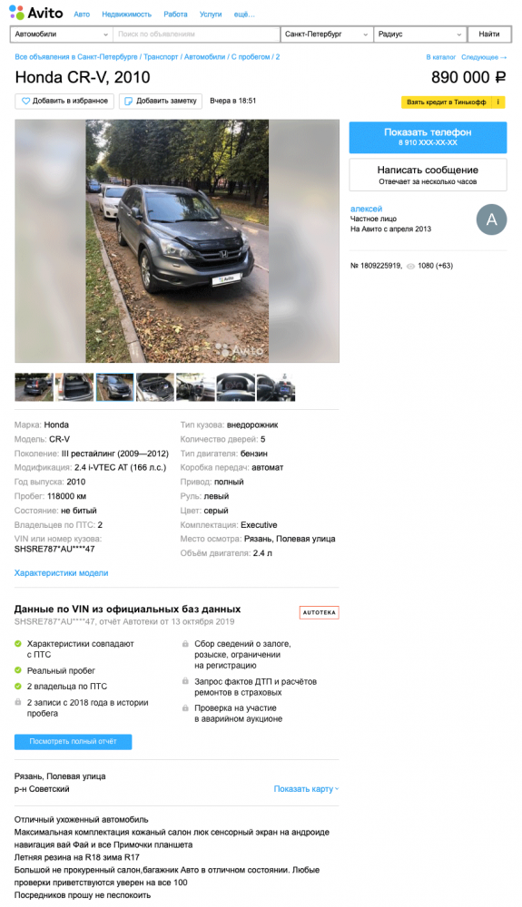 Ну а теперь, вооружившись набором базовых знаний, можно попробовать выбрать машину на ближайшие несколько лет. Памятуя об отзывах тех, кто в свое время выбрал двухлитровый мотор, а потом сказал, что «будь возможность вернуться в прошлое – все равно взял бы CR-V, но с двигателем 2,4», можно сразу отказаться от экономии. Выбор коробки передач тоже прозрачен: и распространенность, и надежность АКП позволяют не думать о поисках машин с механикой, если только она не входит в список личных предпочтений. Так что остается лишь найти свежую рестайлинговую машину с умеренным пробегом – к примеру, вот такую, и надеяться, что все хронические болезни уже вылечены и обратно вернутся не скоро.