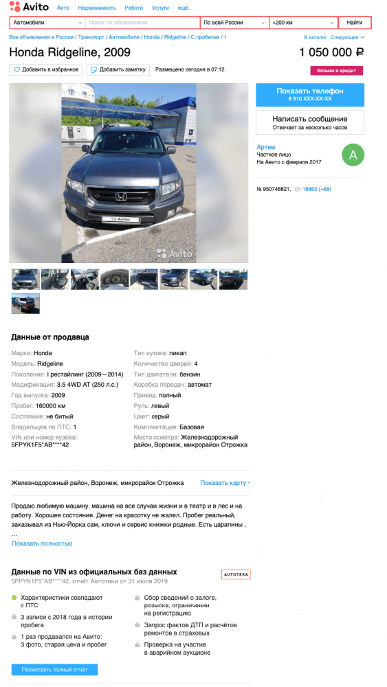 Тем не менее, избавившись от некоторых проблем, Ridgeline не стал «нестареющим», и все возрастные проблемы для него вполне актуальны. В силу того, что модель из-за своей редкости у нас покупается как имиджевая, почти все машины поддерживаются в достойном состоянии, и найти неприлично гнилой пикап довольно сложно. Основная часть проблем локализуется в типовых точках: это днище, низы дверей и колесные арки. Еще одна очевидная, но важная область – это пороги: учитывая, что они практически всегда прикрыты пластиковыми подножками, нужно приложить усилия и максимально точно выяснить состояние металла под ним. Ну а помимо состояния кузова стоит уделить внимание и эксплуатационным особенностям: проверить полы в салоне на предмет влажности и, следовательно, проблем с уплотнителями, а также работоспособность хитрого борта кузова, который может распахиваться вниз, а может открываться вбок. Еще одна «фирменная» полость Ridgeline – багажный отсек под полом кузова, в задней его части: под крышкой скрывается приличного объема ниша, в которой штатно прячется запаска и мелкий скарб, а нештатно – влага и грязь. Полимерное защитное покрытие кузова при этом может кое-что рассказать о сценариях эксплуатации машины: если оно истерто от постоянных рабочих разъездов, уделите повышенное внимание не только общему техническому состоянию, но и проверке пробега. Здесь вам могут помочь платные сервисы, такие как Автотека, где можно выяснить историю зарегистрированных пробегов для конкретного автомобиля.